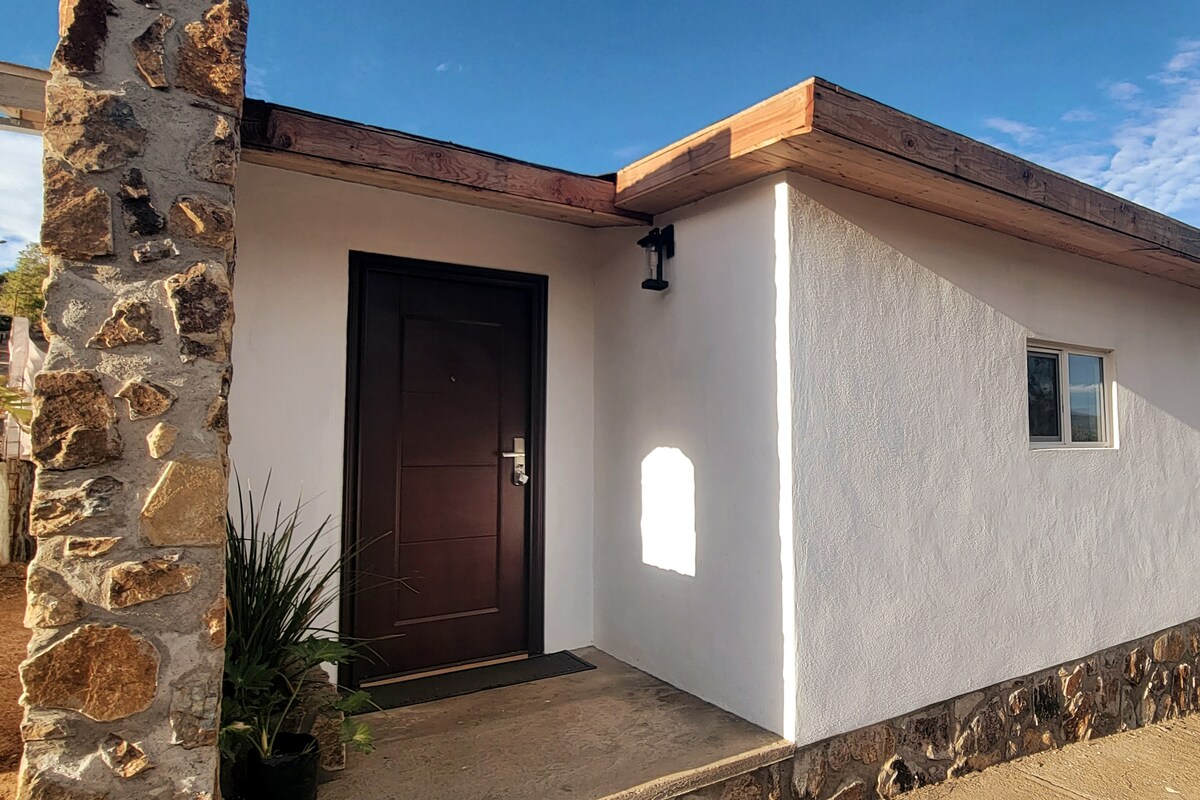 The property is situated on the outskirts of Julian in the midst of the Anza Borrego Desert State Park, approx. 2400ft above sea level. At this elevation you have access to mountain and desert life alike. A private and restful place for relaxing and unwinding. Stargazing in a dark sky community on a separate patio oriented to a 270 degree open sky. Original art and furniture welcome you. Modern amenities help you stay as connected as you wish. Walk in, drive in or fly in!