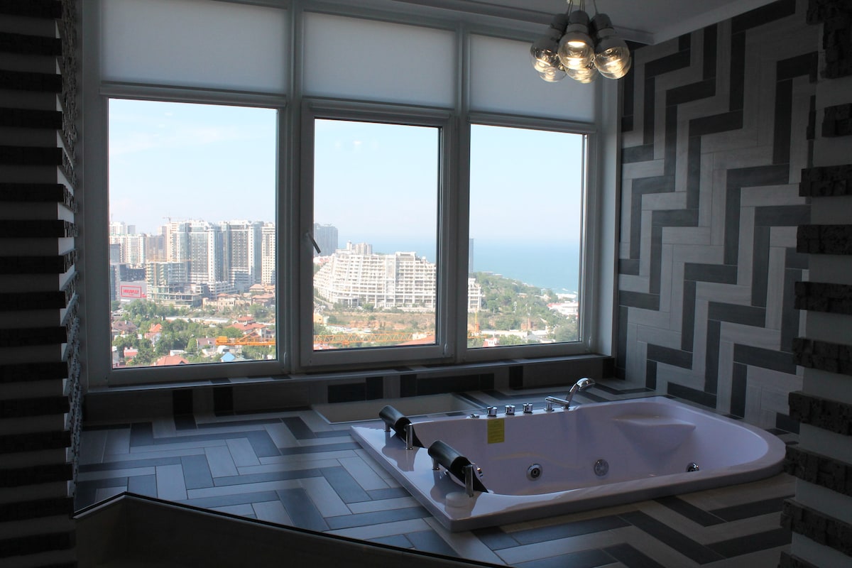 Luxury 1 bedroom apartment in Arcadia, with jacuzzi and sea view The apartment has everything for a comfortable stay) To the sea and the best beaches, restaurants and nightclubs 200 meters on foot. Closed, protected area. The house has a SPA salon, a pharmacy, a grocery store. There are all bathroom amenities for two persons (bathrobe, towel) Bed linen is attached. Parking is a separate payment.
