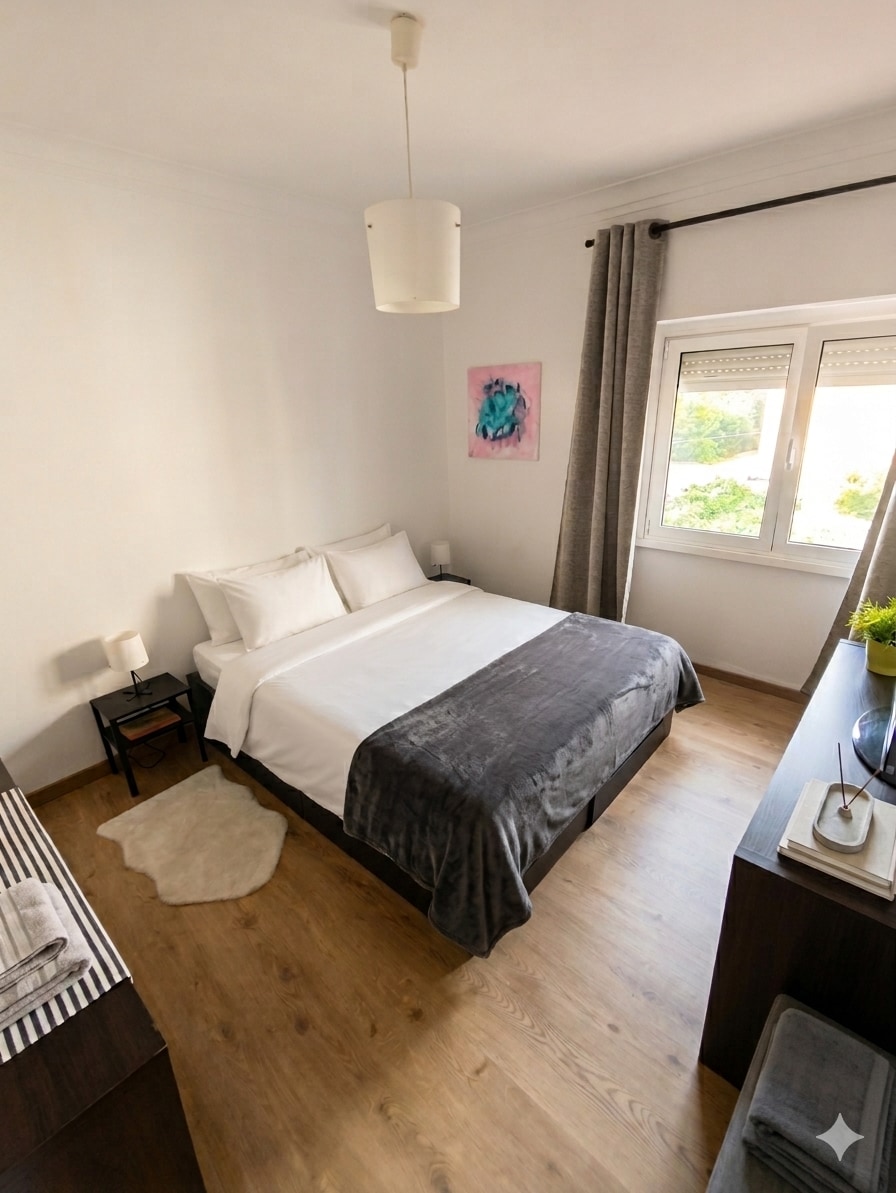 Bersantai di ruang yang tenang dan bergaya ini. Kemudahan: - 1 katil kelamin dan 1 katil bujang besar (bilik dengan balkoni). - 1 bilik mandi, dapur lengkap, ruang tamu dengan sofa, TV dan internet. Akses: - Perhentian bas di hadapan rumah dengan akses pantas ke Algés (laluan kereta api). - Pasaraya Pingo Doce, Lidl, dan Mini Preço dalam jarak berjalan kaki. - Berhampiran pantai Jamor dan Linha (dengan taman-taman besar untuk berehat). - Akses yang baik ke pusat bandar Lisbon (10 minit dengan kereta ke Amoreiras dan Marquês de Pombal).