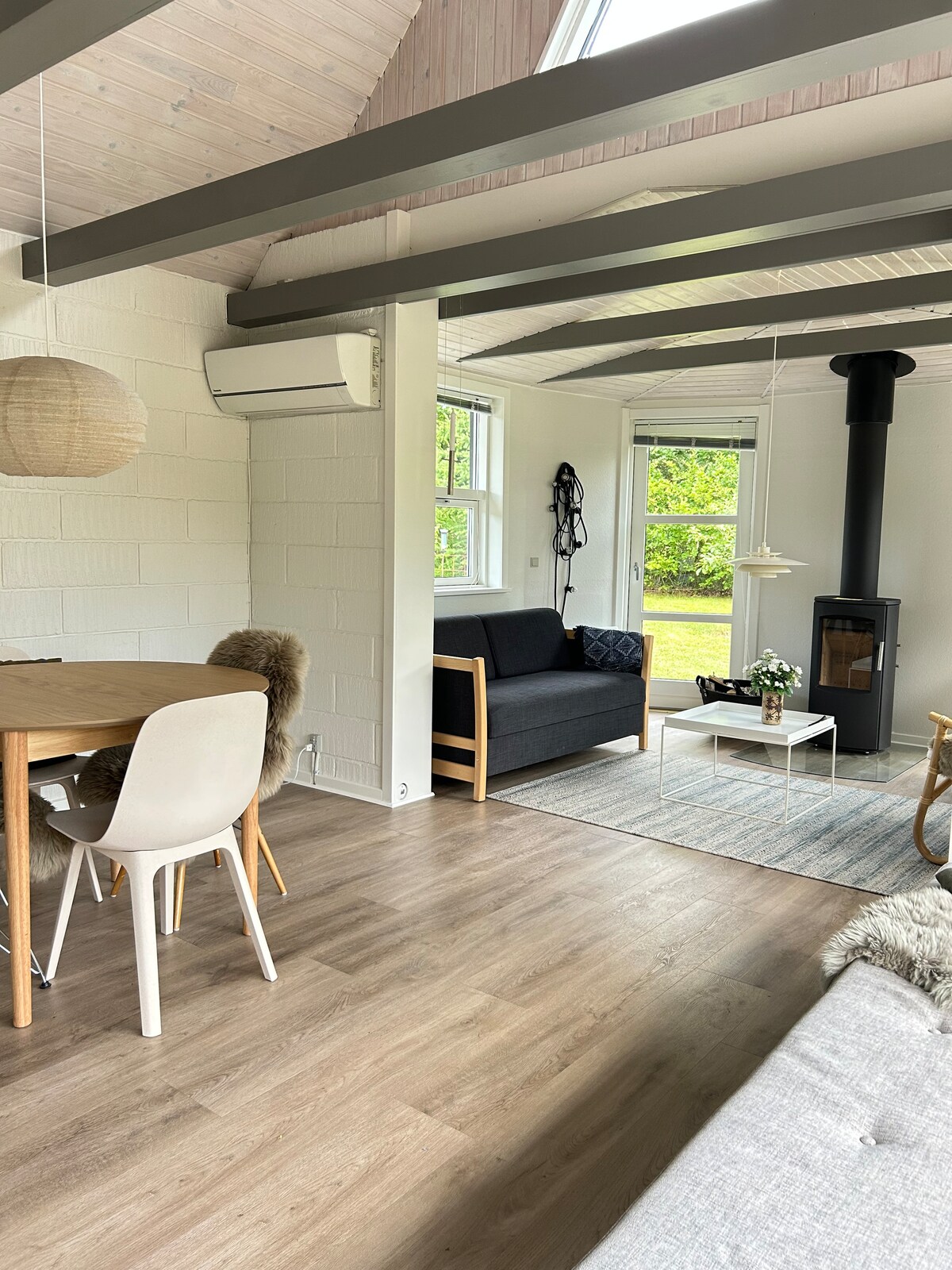 Hyggeligt sommerhus på 138 kvm med god plads til 4 voksne samt 4 børn og optil 2 spædbarn i rejseseng. Sommerhuset er nyrenoveret. Min. 4 dag udenfor sæson og 1 uge i højsæson. Slutrengøring kr. 850,- pr. ophold. Der følger en brændekurv fyld med brænde, medbring evt. selv træ. Der betales for forbrug efter måler, strøm 2,95 kr. pr kwh, vand og afledning kr. 89,- pr m3, udlejer aflæser ved tjek ind og ud og sender opkrævning af reelt forbrug via Airbnb.