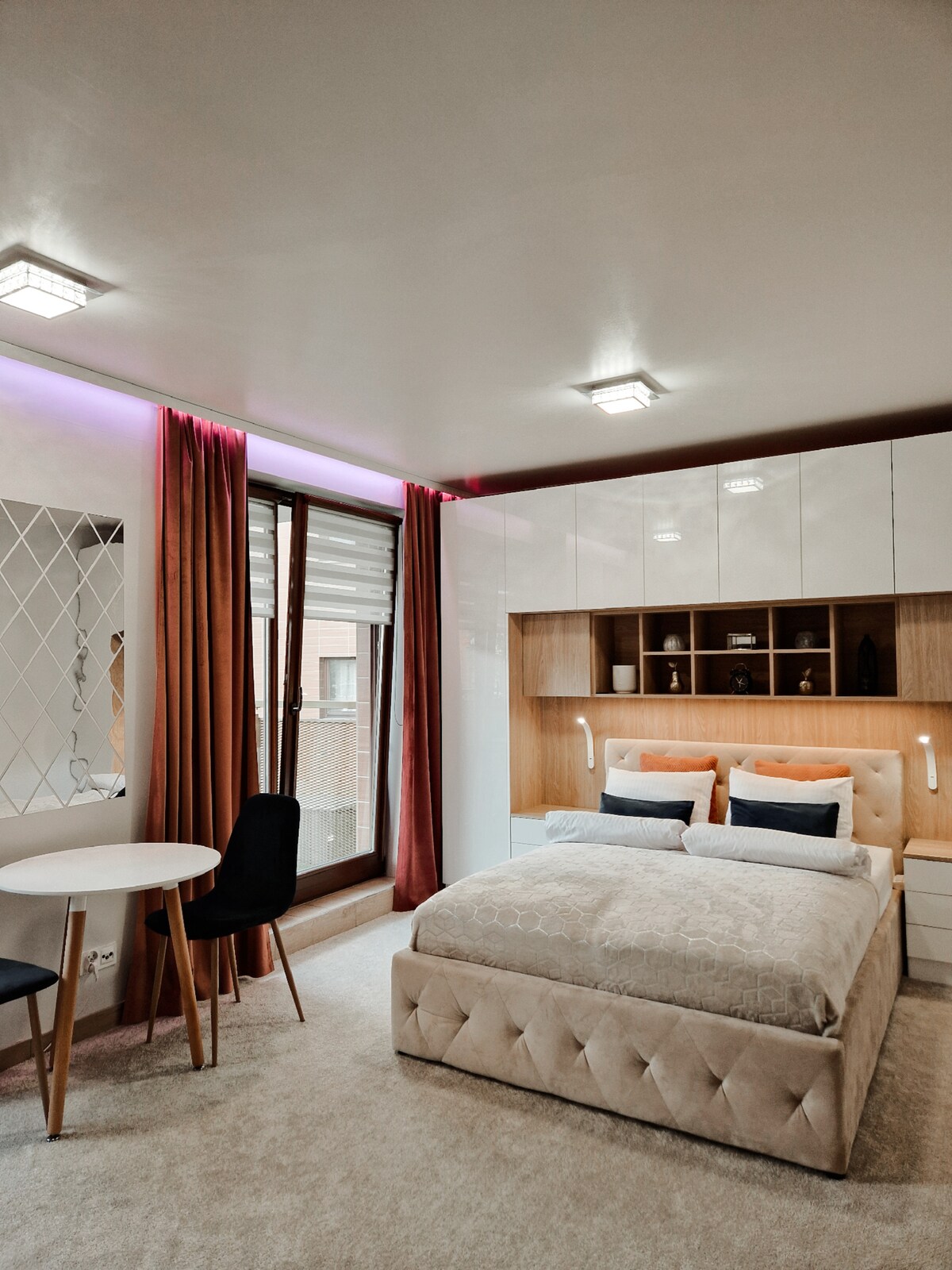 Kemewahan Di Atas Bandar Luangkan satu malam di penthouse unik di tingkat atas "Manhattan" ikonik Wrocław, di tengah-tengah Plac Grunwaldzki. Apartmen ini benar-benar unik – dinding kaca penuh, dengan pemandangan panorama 360° yang tiada tandingan di seluruh bandar. Matahari terbit di atas Sungai Oder, lampu bandar di atas Old Town pada waktu malam – semuanya berada di depan mata anda.