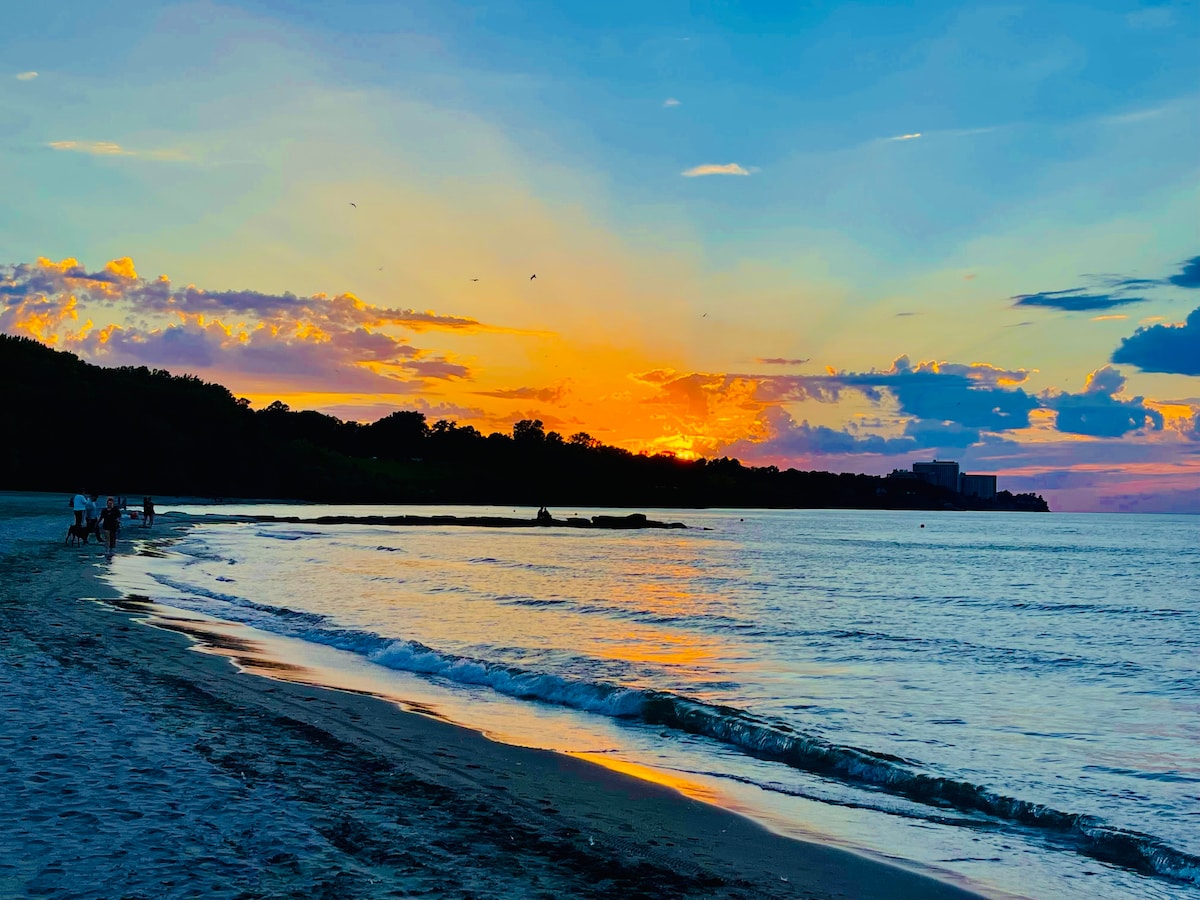 Spacious, pristine 2nd-floor apt over luxury home on Lake Erie Perfect for Easy Travel w Kids - Pool heated May-Sep weather permitting - Enjoy sunsets in backyard - Walk to Edgewater Beach/ Park - 8 mins from downtown/ sports/ casino - 3 Queen beds + air mattress - Crib, rocking chair & changing table - Play room with toys - Fully-stocked kitchen - Keurig and drip coffee, decaf, tea - Grocery delivery available - 2 mins to grocery store - 1-min to Starbucks, CVS, nail salon - Free parking