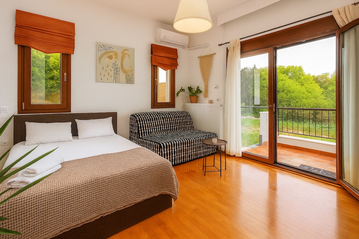 Percutian gunung yang tenang, sesuai untuk pasangan atau keluarga kecil di dataran tinggi Greece yang tenang. Studio yang selesa dan lengkap dengan pemandangan yang menakjubkan, udara gunung yang bersih, dan semua keselesaan dan privasi untuk berehat, memulihkan tenaga, atau bekerja dari jarak jauh. Tidak kira pada bila-bila masa dalam setahun, anda boleh menjangkakan percutian yang selesa di mana anda boleh mendapatkan semula kekuatan dan nafas anda!