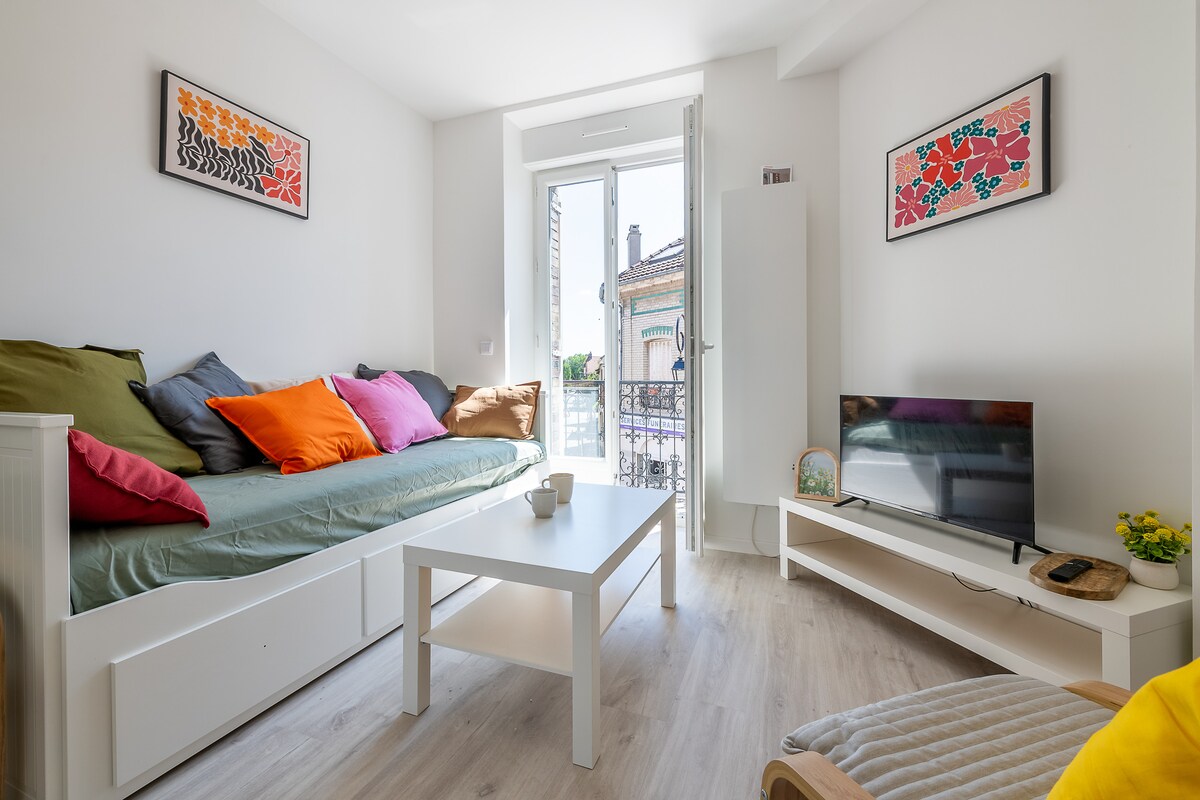 🌲 Cozy little cocoon under a pine, 10 min from Disneyland & RER A. We created this studio as a calm place to relax after a magical (and often long!) day at Disneyland. Whether you're visiting the parks or just looking for a peaceful break, you'll feel at home here ! Enjoy a real bed 🛏️, kitchenette, private bathroom and a quiet atmosphere. Baby cot available 👶. Bus 10–15 min walk, Uber/Bolt ~10€. Free parking nearby. Ideal for a Disney stay or a couple’s getaway 🙂