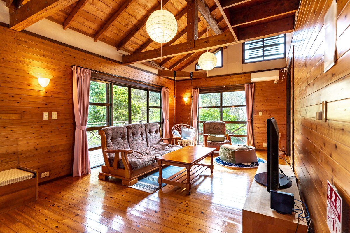 Rumah yang dibina di dalam taman besar seperti taman hutan Totoro. Akuarium (25 minit), Kourijima (15 minit), Runtuhan Istana Nakijin (15 minit), dan pelabuhan pengangkutan terletak dengan mudah. Terdapat BBQ dan unggun api di bawah bintang-bintang.Terdapat banyak buaian rajut, buaian, mainan dan alat muzik. Ia bukan kawasan kediaman, jadi anda boleh berparti.★ Ia dibalut di dalam hutan, jadi anda boleh mempunyai masa persendirian ^ ^ Terdapat 3 bilik persendirian, ruang tamu, dapur, dan bilik mandi (2) tandas (2). Semua cadar adalah futon. Ia boleh memuatkan sehingga 16 orang.Sila masukkan bilangan orang. (Untuk lebih daripada 16 orang, sila hubungi kami.) Isyarat lemah kerana ia berada di dalam★ hutan. Kanak-kanak melebihi★ 36 bulan adalah kadar dewasa. Sewaan peralatan★ BBQ ialah 1000 yen yen untuk 1000 yen.Sila sediakan barangan terpakai seperti arang, bahan pencetus dan bahan-bahan. ★Tuala dan berus gigi adalah perkhidmatan berbayar.Sila bawa sendiri Serangga boleh memasuki bilik kerana persekitaran★ semula jadi yang kaya. Sila faham.