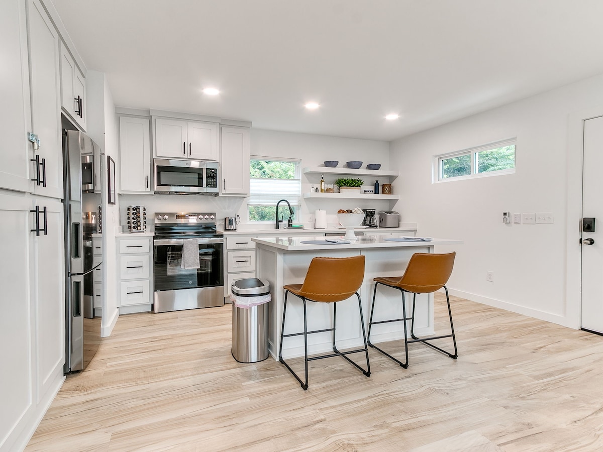 Direka dengan tekstur semula jadi, nada bersahaja, & cahaya semula jadi yang hebat untuk memastikan suasana yang selesa dan tenang yang anda tidak mahu tinggalkan! Dbl master suite w/ 2 queen bds & 2 bilik mandi peribadi ensuite menjadikan ini sesuai untuk 2 pasangan, keluarga, profesional, atau sesiapa sahaja yang ingin menginap di pusat OKC dan masih mendapat pengalaman tempatan. PLAZA adalah daerah seni terbaik OKC & hanya 3 blok berjalan kaki ke makanan lazat, seni jalanan bertaraf dunia, kopi, kedai tempatan, perayaan, muzik live, & banyak lagi. Pusat bandar OKC berjarak 5 minit memandu!