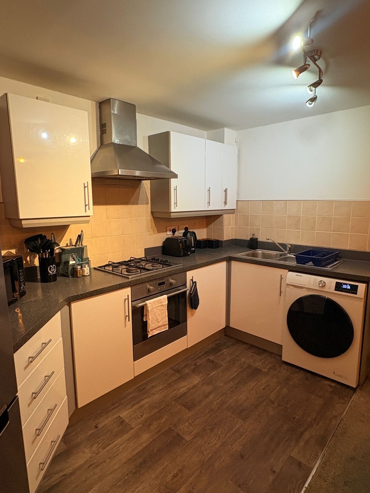 Selamat datang ke lampiran kami! Terletak di taman belakang kami (dengan pintu masuk persendiriannya sendiri) , lampiran selesa kami telah siap pada tahun 2021 dengan standard yang tinggi. Lampiran ini terdiri daripada bilik tidur kelamin, bilik air, ruang tamu (yang boleh diubah suai menjadi kawasan tidur berasingan) dan dapur kecil yang lengkap. Terletak di pusat bandar Chapelford, terdapat pub (menghidangkan makanan), pasar raya, ahli kimia, taman dan stesen kereta api (dengan kereta api terus ke Manchester dan Liverpool) semuanya dalam masa 3 minit berjalan kaki.