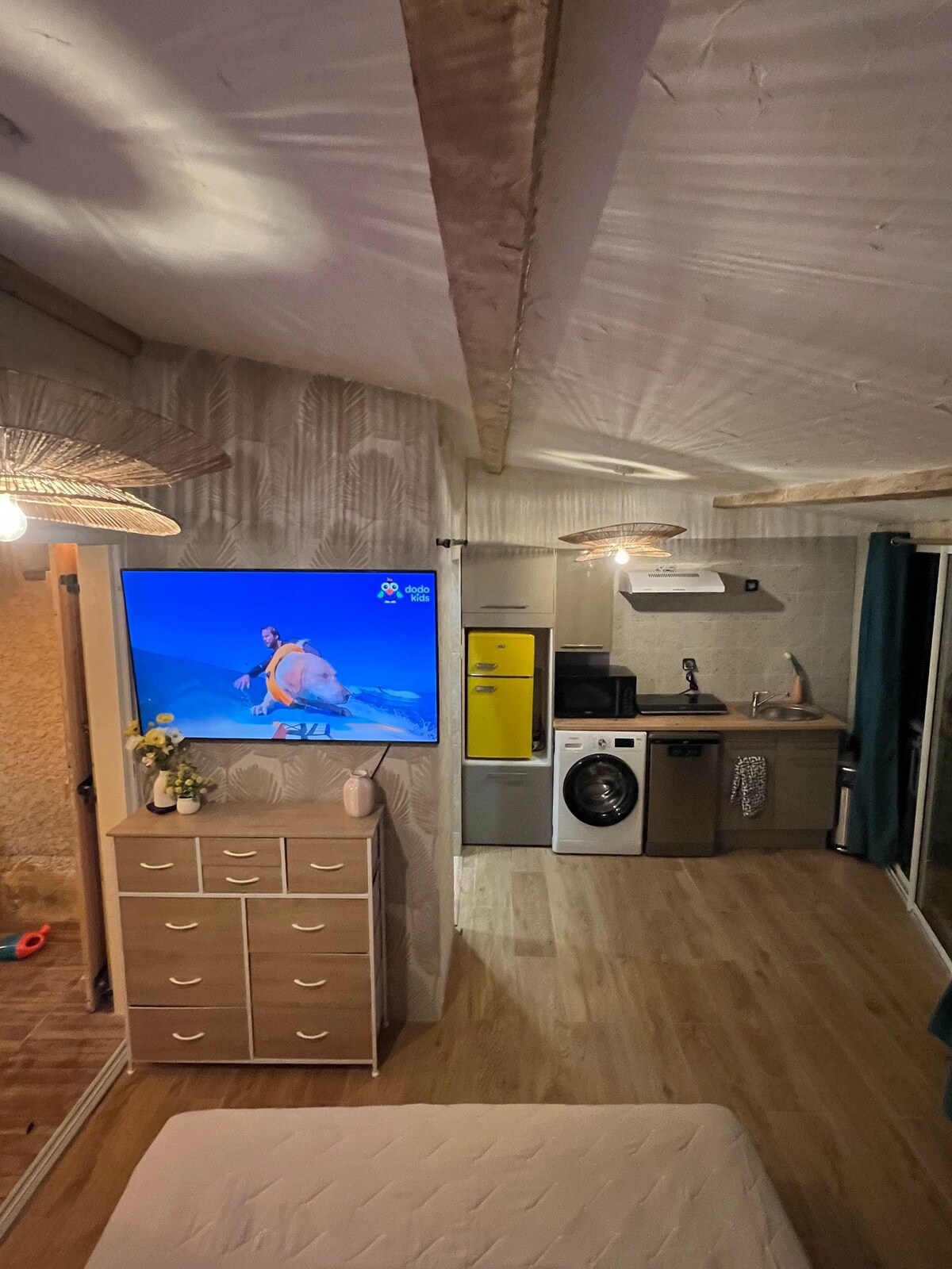Di pusat kebun anggur Bandolais 10 menit dari pantai Bandol atau Lecques. Studio bebas, berhawa dingin secara senyap-senyap dalam kehijauan. Bilik utama 32 m2 dengan 2 sofa dan mezzanine 5 m2 ( katil dalam 160). Ruang pejabat, akses Internet Wi-Fi. Dapur lengkap, TV dan bilik mandi dengan tandas serta bilik persalinan. Teres 22 m2 dengan pergola yang dilengkapi untuk makan dengan gas BBA. Akses percuma kepada mesin basuh. Tempat letak kereta luaran dan akses persendirian untuk kenderaan anda.