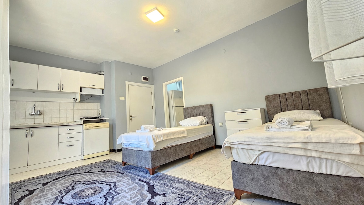 Central Flats Fethiye terletak di pusat bandar, di tengah-tengah restoran paling eksklusif, pub popular, membeli-belah dan kehidupan di Oldtown Bazaar (Paspatur). Ia terdiri daripada 3 apartmen yang dibina pada Jun 2023, dua dengan balkoni dan satu tanpa balkoni. Setiap apartmen mempunyai kapasiti untuk 3 orang dengan 2 katil single + 1 sofa katil. Ia direka untuk anda memasak makanan yang anda mahu dan menikmati percutian yang menyenangkan di dapur apartmen kami. Kami berbesar hati untuk mengalu-alukan anda di apartmen kami.