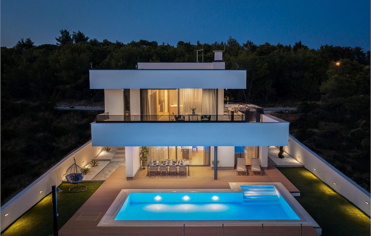 Alami lambang kemewahan pantai di vila 3 tingkat kami yang baru dibina, hanya 170 meter dari pantai Zadar. Nikmati panorama laut 180 darjah yang menakjubkan dan latar langit Zadar dari tingkat atas. Selami keanggunan moden dengan seni bina anggun dan perabot kontemporari. Nikmati bersantai dengan sauna dalaman dan jakuzi, dilengkapi dengan empat bilik mandi. Dapur bergaya adalah syurga kulinari, manakala kemudahan luar termasuk kolam renang yang menyegarkan dan gril.