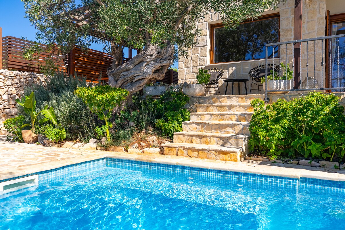 Bangun pagi dengan pemandangan panorama Adriatik di rumah yang tenang di atas Primošten. Setiap bilik menghadap ke laut, dan empat bilik tidur tingkat atas terbuka ke teres persendirian yang luas untuk bersantai di luar pada waktu pagi. Kolam air masin dikelilingi oleh alam semula jadi, sesuai untuk berenang santai, manakala ruang tamu pelan terbuka mengalir dengan mudah ke taman. Nikmati makanan di dapur luar yang berbumbung atau berehat di ruang tamu yang teduh – tempat yang tenang untuk keluarga atau rakan, hanya beberapa minit memandu dari pantai.