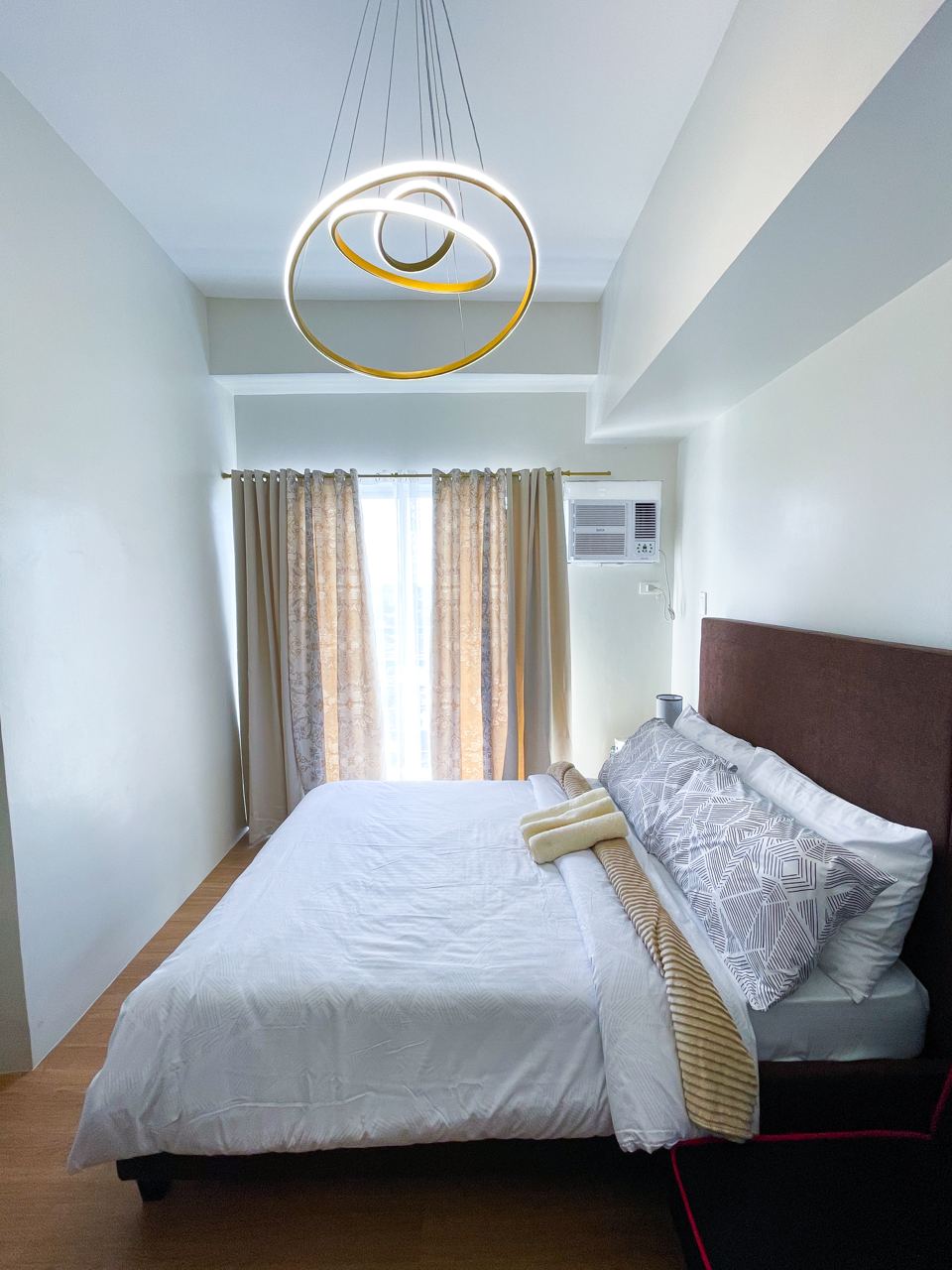 Unit kondominium berada dalam jarak berjalan kaki ke restoran, kedai, hospital dan Ayala Mall. Persekitarannya selamat. Terdapat keselamatan 24 jam dan kakitangan yang ditugaskan di lobi. Terdapat lif/lif di dalam bangunan ini. Bahagian dalam unit studio selesa dan selesa. Tempat ini dilengkapi dengan 2 katil double. Ia boleh menampung hingga 3 tetamu. WIFI Internet disediakan - sesuai untuk Panggilan Internet dan Meluncur Web.