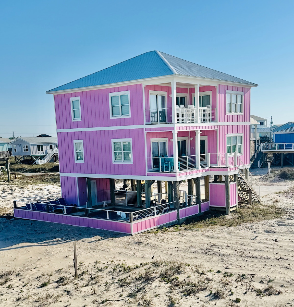 Rumah tepi pantai yang indah dan luas yang terletak betul-betul di Teluk Mexico di Fort Morgan, AL. Dua tingkat dengan empat bilik tidur mengadap laut. Bilik tidur aras bawah terbuka ke anjung yang disaring. Bilik tidur tingkat atas mempunyai balkoni persendirian mereka sendiri. Empat katil berkembar di kawasan dua tingkat antara dua bilik tidur/bilik mandi di tingkat atas. Boleh memuatkan 12 orang. Sesuai untuk percutian berbilang keluarga!