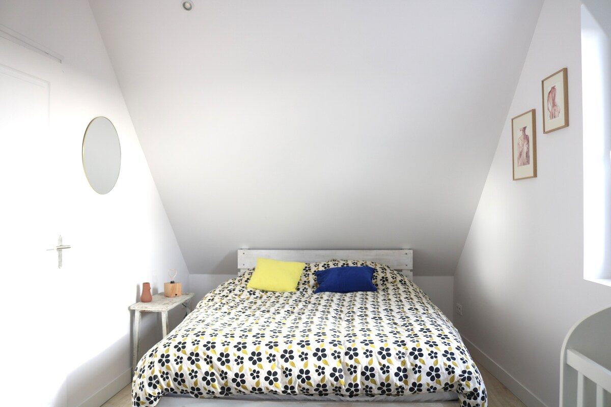 Studio bilik persendirian yang sesuai untuk pasangan, pengembara solo dan pengembara perniagaan. Tempat letak kereta dan Wi-Fi tersedia. Semua kedai harian berdekatan (kedai roti, kedai daging, pasar raya...), serta laluan berbasikal, padang golf Mérignies, dan kolam memancing di Mousserie. Lapangan Terbang Lille Lesquin terletak 10km jauhnya.