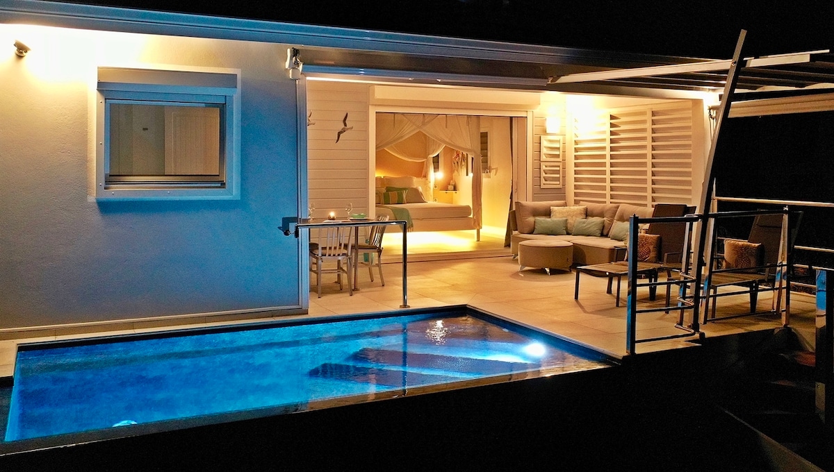 Nestled on a natural view point overlooking the Caribbean Sea, the 5-star Villa Blue Moon is one of the exceptional villas offered by *Blue Haven Villas Guadeloupe*. Sleeps 2. - Salt-water pool just steps from the super-king-size bed facing the sea with unopposed views. - Mosquito nets on windows and bed. -Fully equipped kitchen; Nespresso, dish & clothes washer, oven... - 180° view and sea access to one of the most beautiful snorkeling spots. - snorkelling gear - Parking, a-c, BBQ, Wi-Fi