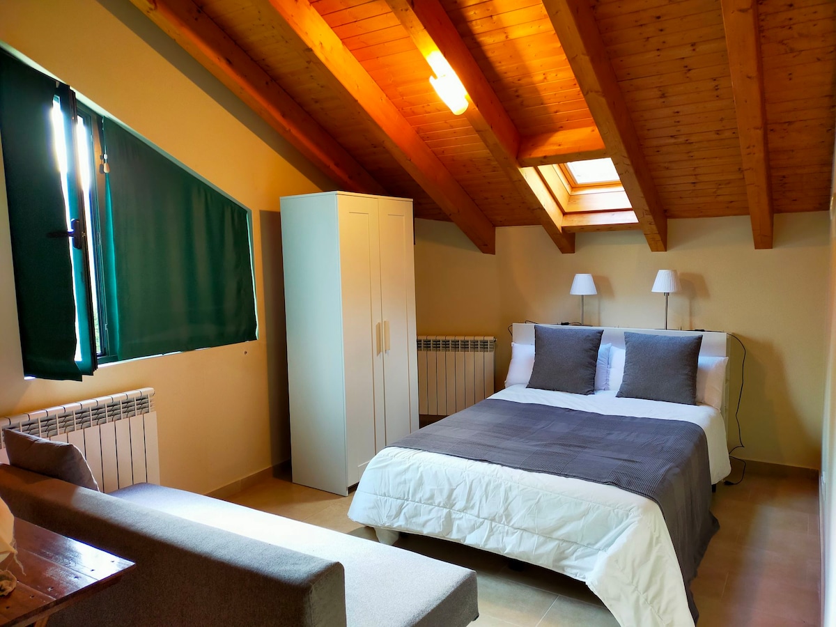 Studio, tenang, pusat dan selesa. Kami terletak di tengah-tengah Asturias. Anda akan menikmati ruang terbuka dengan dapur, sofa, dan 1.35 katil untuk dua orang, serta bilik mandi penuh dengan tab mandi. Pemanasan pusat dari November ke S. Santa. Ia juga mempunyai teres. VUT-6265-AS