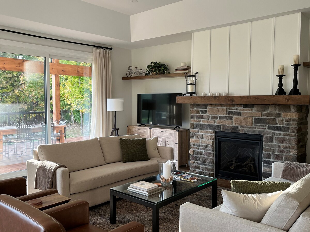 Sitting on top of Horseshoe Valley, this stunning and unique condo sets the stage for a memorable and cozy trip. This suite has it all! - Fully stocked kitchen - 6-person dining table - Pull-out couch + loveseat + lounge chair - Cozy fireplace - Comfortable king-size bed - 2-person soaker tub + shower - Private Balcony - Year-round indoor/outdoor pool with hot tub and sauna - Fully equipped gym Minutes away from Vetta Spa, Horseshoe Valley, golf courses and more!