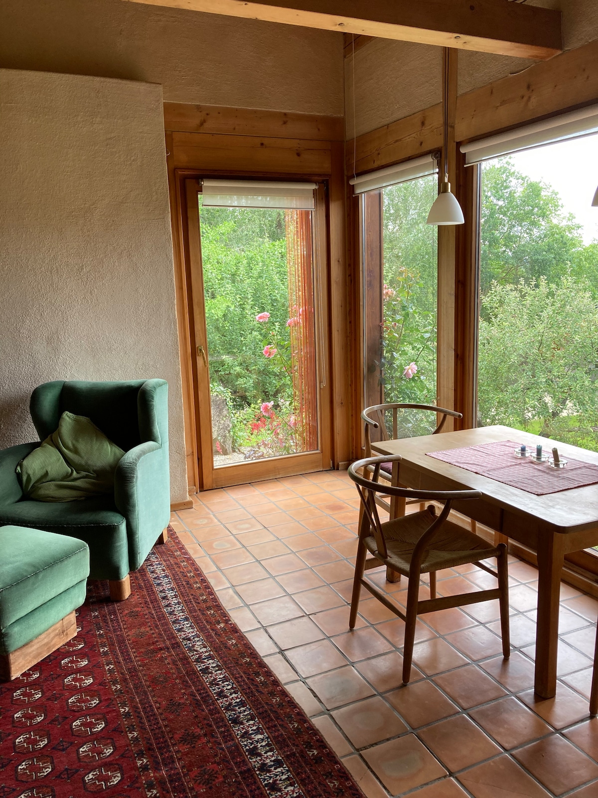Apartmen ini baru dibina di rumah ladang lama (anno 1833). Semasa membuat persediaan, kami berhati-hati untuk menggunakan sebanyak mungkin bahan bangunan semula jadi (kayu, tanah liat, rami). Dinding sekatan direka sebagai dinding truss. Ruang tamu membentuk bilik dengan dapur. Apartmen ini mempunyai kira-kira 60 m² dan bebas halangan.