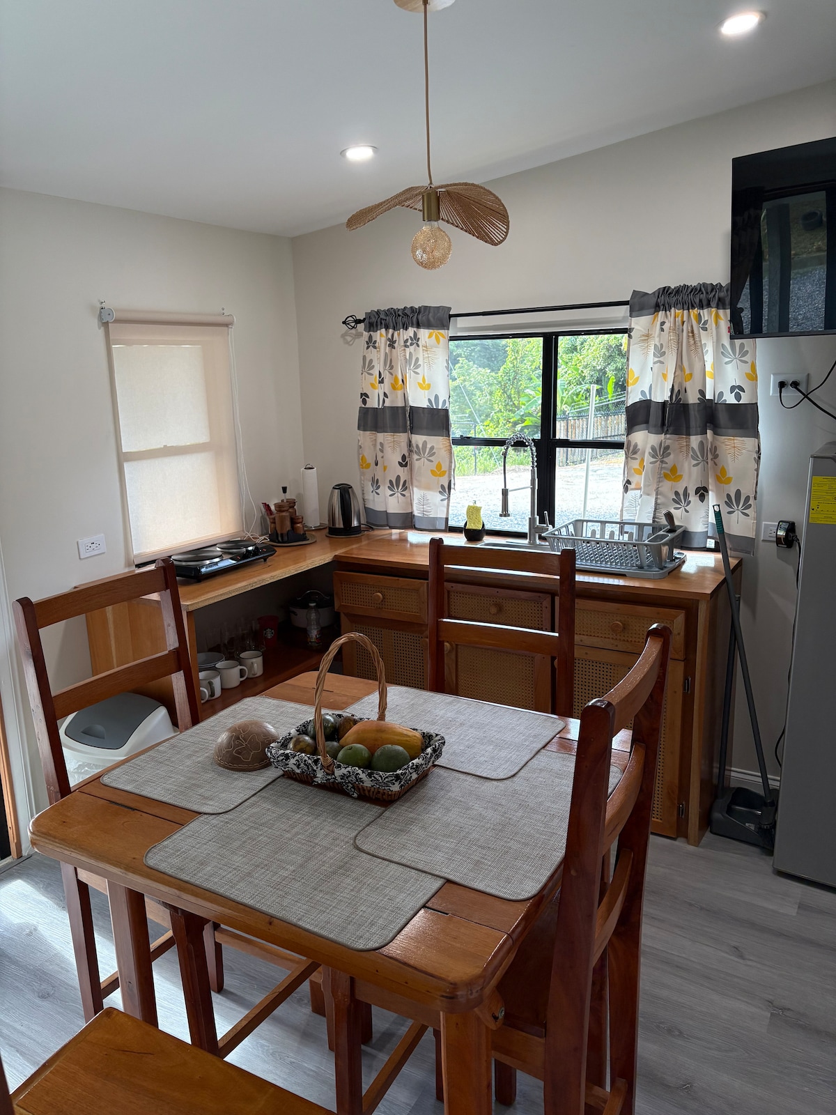 Bersantai di rumah yang selesa ini. Dapur yang baru diubahsuai ini mempunyai kemasan moden dan sudut makan yang selesa. Penginapan ini termasuk: AC, 3 bilik tidur, 2 bilik mandi, Peti sejuk, dapur memasak elektrik, ketuhar gelombang mikro, cerek, periuk, peralatan, cadar, pemanas air, televisyen, kabel dan internet. Pantai, kedai dan restoran hanya beberapa minit jauhnya tetapi kawasan ini terasa tenang dan terpencil. Berjalan-jalan awal pagi, nikmati hidangan tempatan berhampiran kemudian kembali untuk minum kopi di halaman belakang.