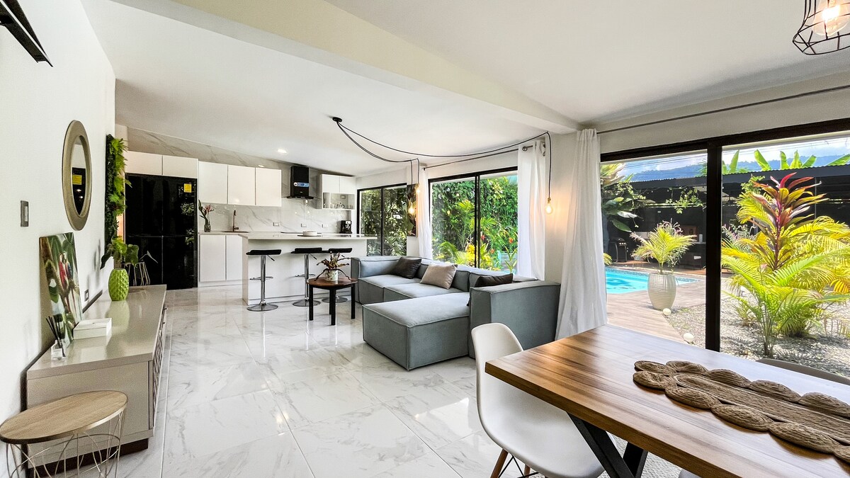 Tempat berehat yang sangat baik, tenang, selamat, rumah gaya moden, bahagian hadapannya menonjol untuk pintu masuk cahaya semula jadi dan integrasi dengan alam semula jadi. Tempat yang luar biasa untuk penginapan persaraan, dikelilingi oleh alam semula jadi, tanpa kesibukan bandar, tetapi dengan akses kepada makanan dan perkhidmatan, dalam purata 15 hingga 25 minit lawatan, di laluan yang agak dekat anda boleh melawat pantai Dominical, Uvita, Taman Negara: Taman Negara Chirripo, Manuel Antonio, Bahía Ballena.