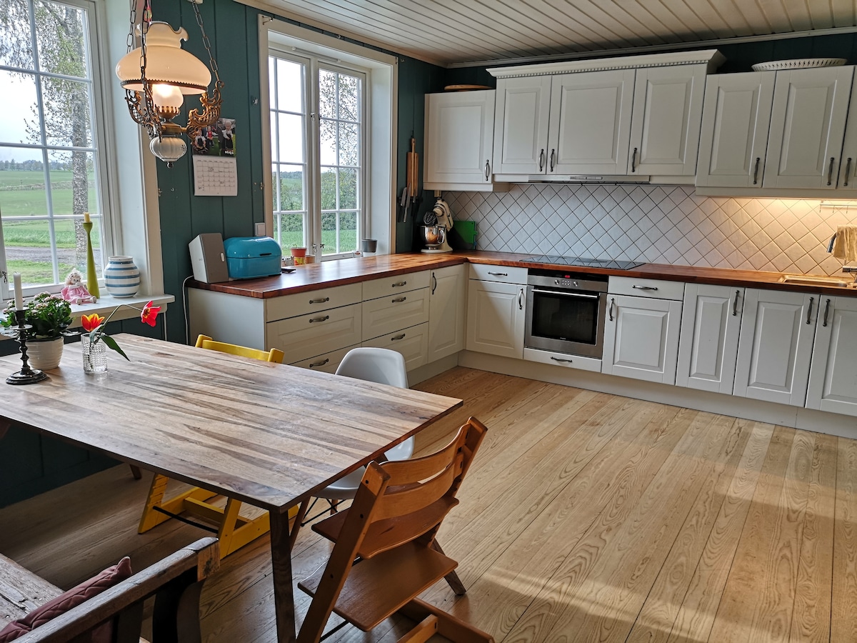 Rumah ladang yang selesa di halaman yang meriah. Tempat ini mempunyai lokasi luar bandar dan tenang di mana kami melakukan pengeluaran bijirin dan penternakan babi. Rumah ini juga mempunyai teres dengan matahari petang dan halaman. Hos tinggal di kediaman ini dan hanya menjadi hos apabila mereka dalam perjalanan dan bercuti. Tempat ini sedang dalam pengubahsuaian. Tinggal lorong tangga dan beberapa perkara kecil lagi.