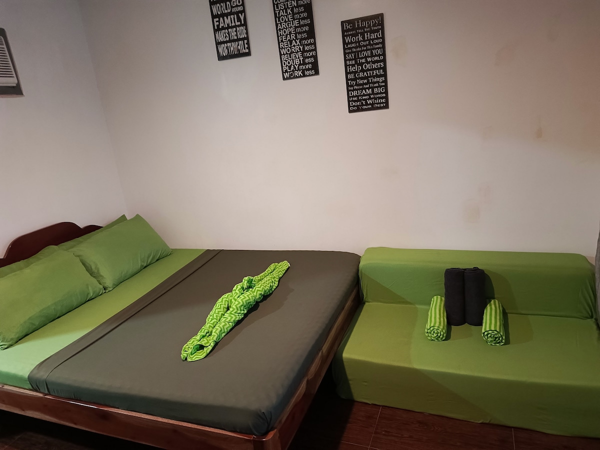 Penginapan ini terletak di kawasan keluarga. Ia terletak di antara bandar pelancongan Moalboal dan Badian. Halaman luas yang besar dengan pokok mangga dan pokok kelapa di sekitar penginapan yang memberikan suasana yang sejuk dan santai selepas hari yang sibuk dengan aktiviti. Bilik ini mempunyai bilik mandi dalam, tv pintar - Netflix sedia dan wifi. Peti sejuk mini, pembakar roti, cerek disediakan serta air minuman.