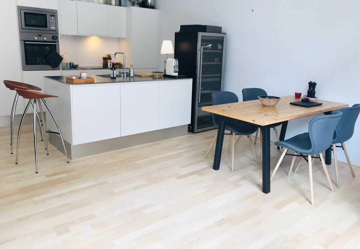 Apartmen Eksklusif, Moden & Luas dalam jarak yang tidak jauh dari pusat bandar dan tarikan utama seperti The Little Mermaid. Terletak berhampiran dengan kawasan dermaga dan jarak berjalan kaki ke stesen kereta api dan metro Nordhavn dan Østerport. 2 bilik tidur, bilik mandi besar, dan ruang tamu dapur yang luas & cerah. Anda juga mempunyai akses kepada teres persendirian seluas 40 meter persegi untuk menikmati matahari pagi. Tempat yang ideal untuk keluarga kecil dan pasangan menikmati masa yang selesa dan santai di Copenhagen!.