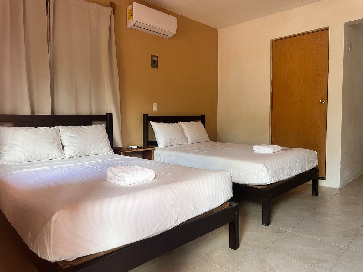 Seluruh apartmen, mempunyai 2 katil kelamin dan dapur yang lengkap, sesuai untuk keluarga atau pasangan yang inginkan keselesaan. Kami berada di kawasan restoran terbaik di kampung ini. Lagun ini hanya 5 blok jauhnya dan 5 blok dari perhentian bas ADO Keluarga saya dan saya akan berbesar hati untuk memberikan anda cadangan terbaik untuk memanfaatkan sepenuhnya lawatan anda. Kami tidak sabar untuk berjumpa anda!