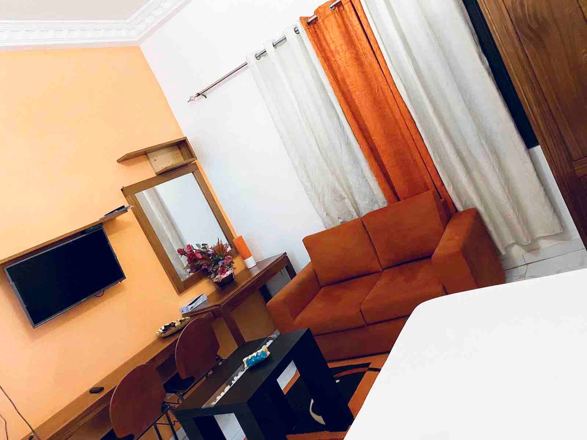 Apartmen berperabot di kawasan perumahan, sangat tenang dengan bilik tidur berhawa dingin, ruang tamu, dapur, bilik mandi. pembantu rumah datang 3 kali seminggu untuk membersihkan apartmen untuk keselesaan anda. Di Sacred Heart, anda boleh berehat di sana dan mendapat akses kepada semua pengangkutan dan perkhidmatan di sebelahnya. Anda akan jatuh cinta dengannya.