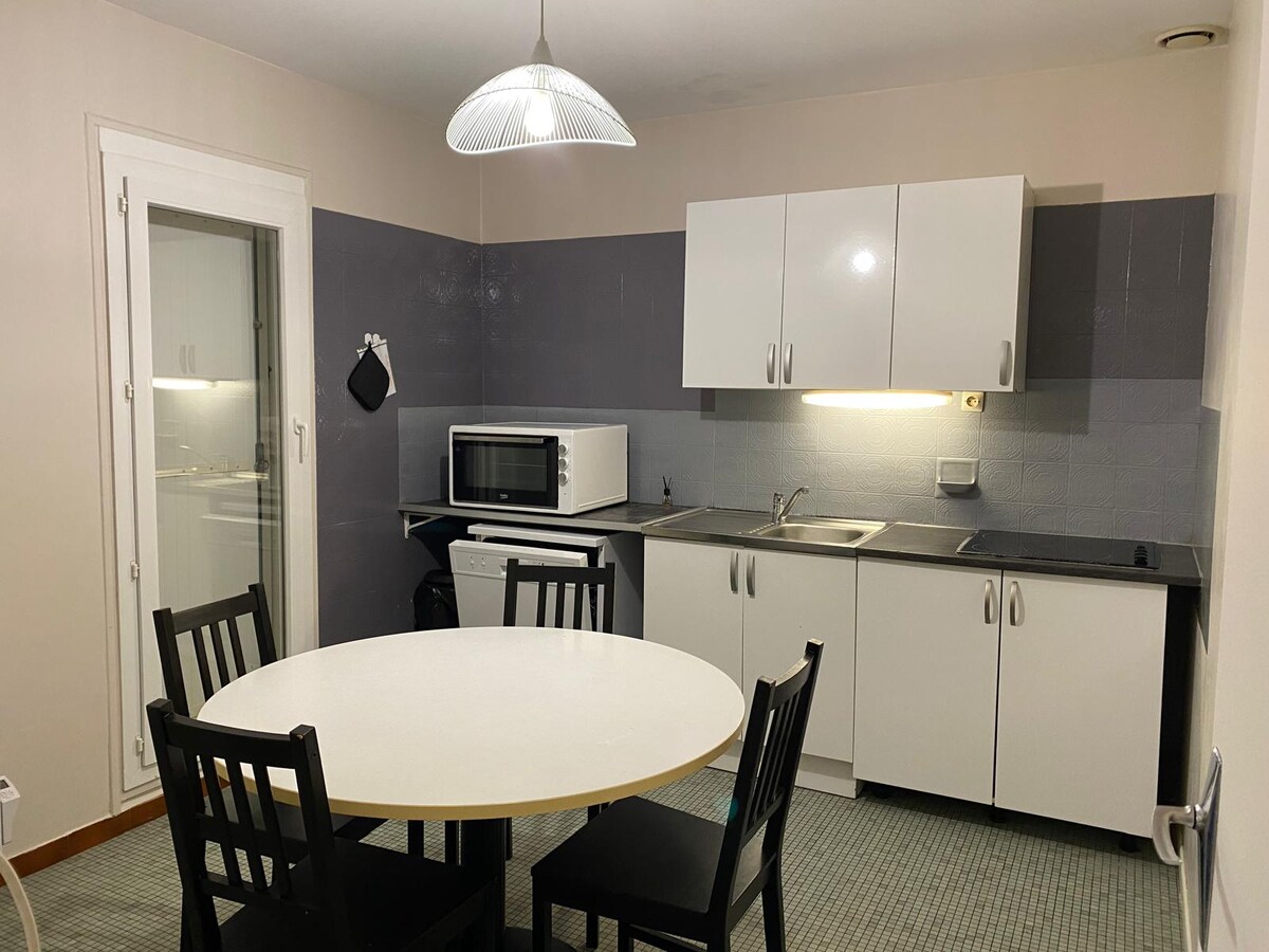 Rumah separuh kayu menawan seluas 60 m² yang terletak di kawasan desa. Tempat yang sesuai untuk mengecas semula bateri anda di tempat yang tenang dan hijau Hiasan desa dan kemudahan yang sangat lengkap Katil disediakan semasa ketibaan anda Kemungkinan daftar masuk sendiri Kedai dan restoran boleh diakses melalui kereta Direka khas untuk penginapan selama beberapa hari hingga beberapa bulan Baru: Rumah ini kini diketahui oleh Fiber yang membolehkan anda bekerja dalam keadaan baik