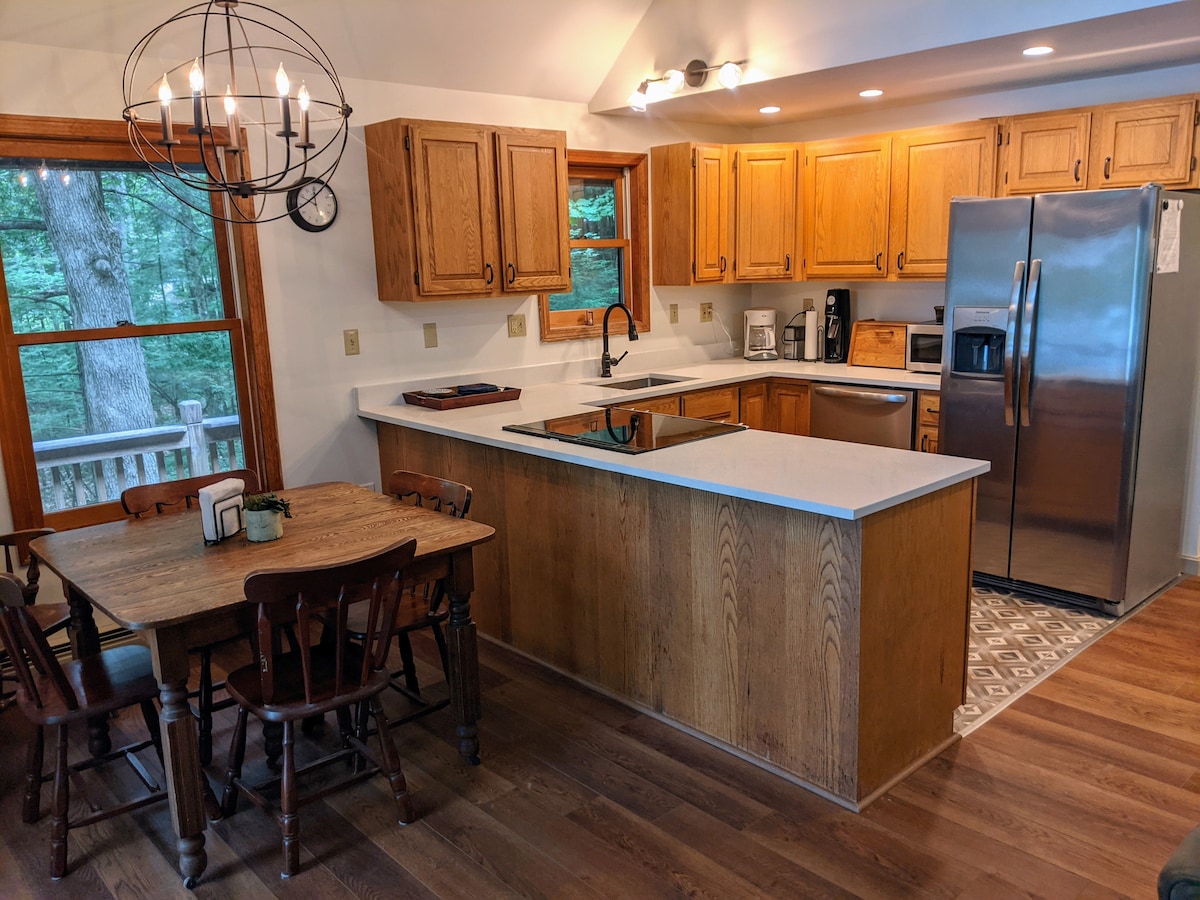 Ini adalah rumah percutian kami yang kami gembira untuk berkongsi dengan anda. Ia adalah rumah ladang tradisional tahun 1890-an dengan bilik "besar" tambahan untuk keseronokan dalaman. Anda akan mempunyai penggunaan seluruh rumah untuk 6 tetamu dengan pilihan untuk sehingga 10 tetamu. Rumah utama mempunyai ruang tamu dengan dapur pembakaran kayu; ruang makan, permainan/ruang duduk. Terdapat 3 bilik tidur + bilik duduk berjalan kaki dengan sofa futon. Berjalan melalui bilik lumpur untuk ke "bilik besar" yang mempunyai gelung bola keranjang, meja foosball & TV.