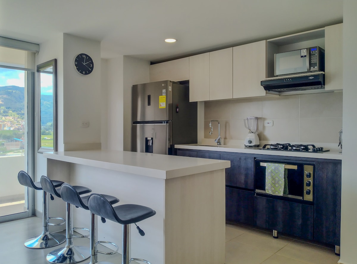 Selamat datang ke apartmen moden kami di Paipa, Boyacá! Apartmen 2 bilik tidur kami yang selesa adalah tempat yang sempurna untuk penginapan yang tidak dapat dilupakan. Di lokasi istimewa menghadap Tasik Sochagota yang indah. Apartmen ini mempunyai dapur yang serba lengkap, ruang tamu dan ruang makan yang selesa dan ruang makan, di mana kami menawarkan anda pengalaman unik untuk berehat di dalam atau di teres, selepas meneroka pesona Paipa.