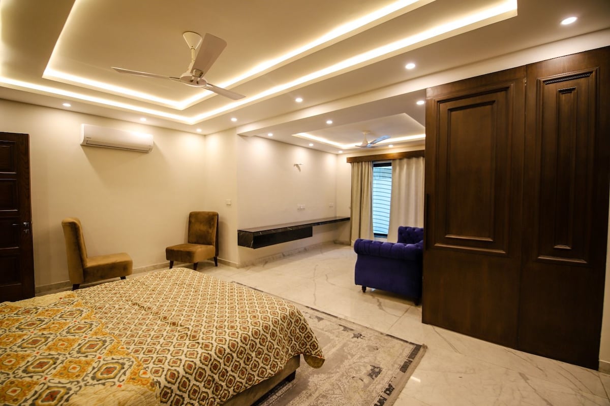 โ DIANUGERAHKAN SUPERHOST OLEH AIRBNB UNTUK PENARAFAN TETAMU KAMI! โ 1 dapur, 1 dapur sarapan, 2 ruang tamu, 2 teres, ruang makan, lounge tv (menghadap belakang dan depan). Lokasi yang menakjubkan, sangat dekat dengan restoran, masjid, pusat membeli-belah (pusat membeli-belah pakej), dan pasar raya standard antarabangsa. 15 minit dari lapangan terbang antarabangsa Lahore. 5 minit dari lebuh raya dan jalan lingkaran, dan pusat membeli-belah gold crest. Ruang letak kereta untuk dua kereta dan perkhidmatan houseboy 24/7 dan keselamatan. โ lihat kami di insta @thevillainndha