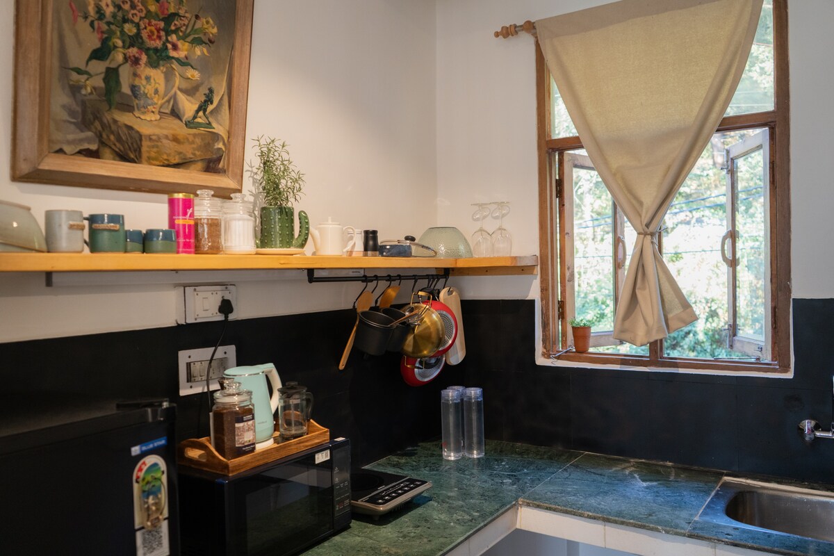 Terletak di kejiranan hutan Dharamshala, Owl's Nest Farm Stay adalah kotej mewah persendirian di ladang organik seluas satu ekar, menawarkan percutian yang aman untuk keluarga dan rakan-rakan. Berhampiran dengan tarikan pelancong namun terletak dalam ketenangan mutlak, ia adalah syurga di mana kicauan burung menggantikan bunyi bising dan alam semula jadi mengelilingi anda. Dengan ruang dalaman yang selesa, tempat duduk luaran yang indah, dan loteng yang tenang untuk membaca atau bermeditasi, ia adalah tempat percutian yang sempurna untuk berehat, merenung, dan berhubung semula dengan alam semula jadi.