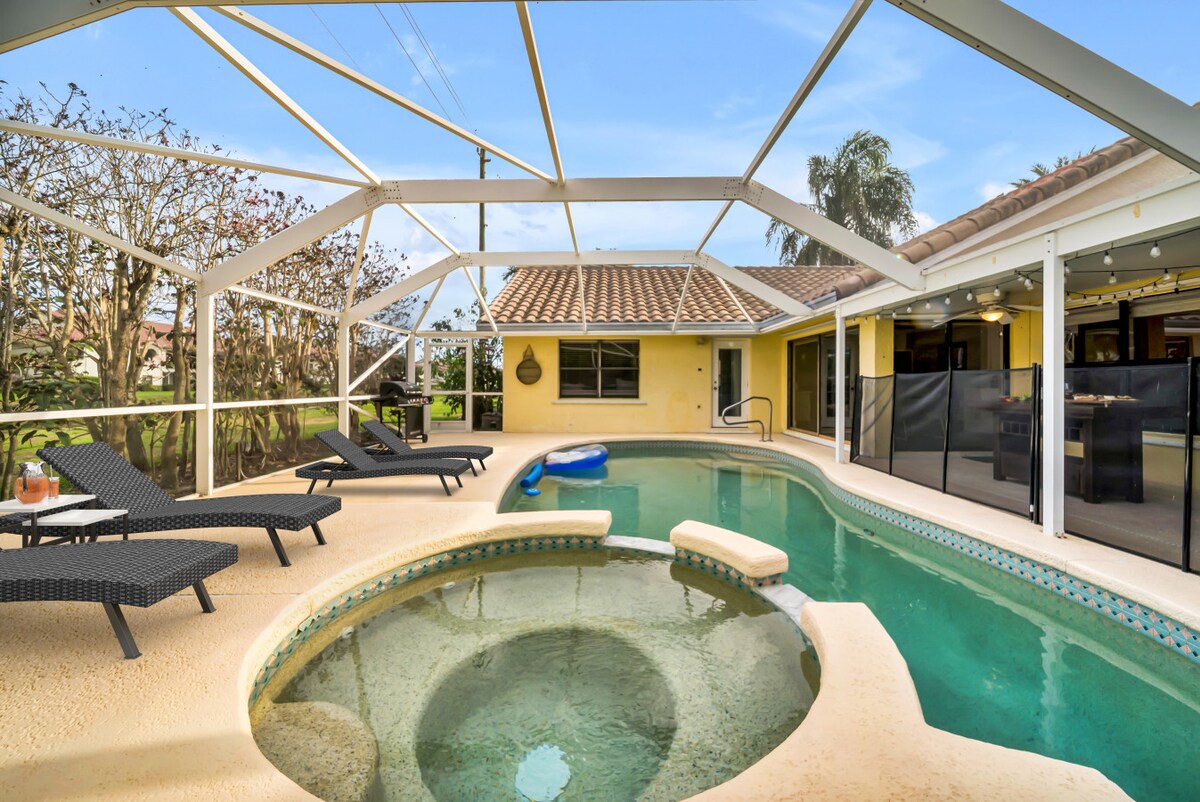 Nikmati penginapan di penginapan berjenama ini! Destinasi percutian peribadi anda untuk berehat di tengah-tengah dedaunan tropika yang banyak, kolam air garam yang dipanaskan, tab mandi air panas, rumah yang serba lengkap, dapur chef, jarak berjalan kaki ke laluan air Intracoastal, dan beberapa minit memandu ke golf dan lautan. Perkhidmatan chef dan urutan tersedia. Kami berbesar hati untuk menyediakan rumah percutian yang berada dalam keadaan bersih dan menyediakan semua kelengkapan yang diperlukan untuk tetamu kami. Pengalaman 5 bintang yang sebenar.