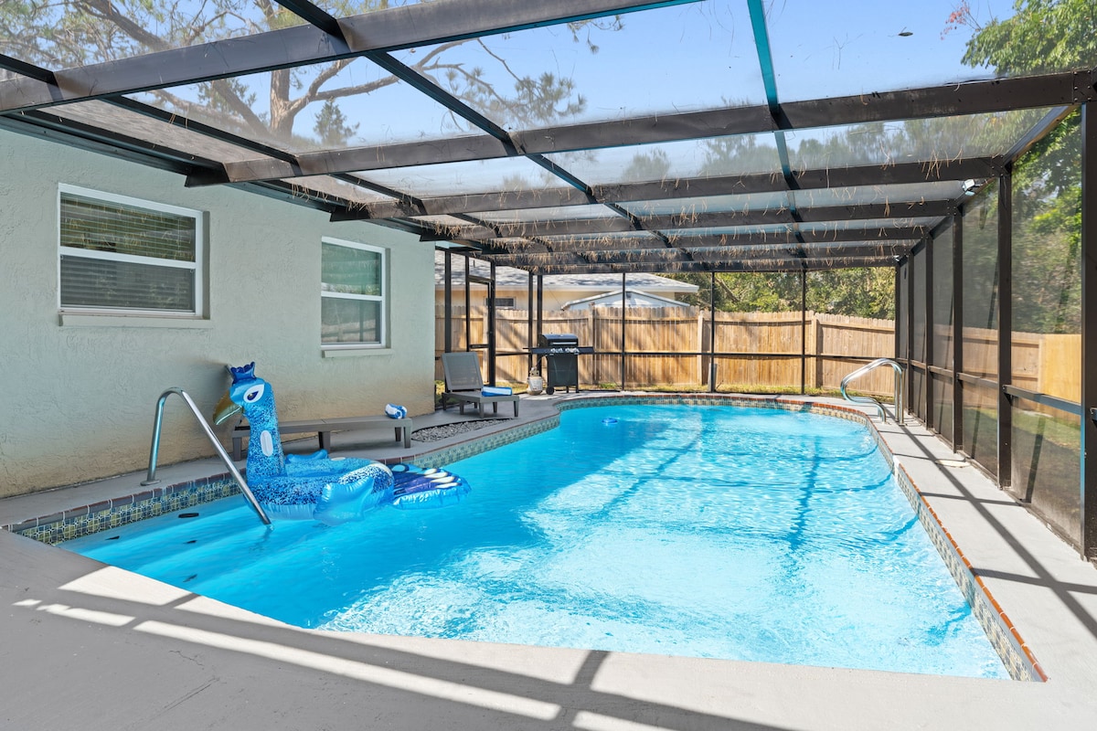 Selamat datang ke oasis Persendirian yang terletak di halaman belakang anda sendiri. Luangkan hari bersantai di tepi kolam renang yang dipanaskan, panggang memasak makanan anda sendiri bersama-sama dengan pagar privasi. Katil utama mempunyai bilik mandi ensuite. Apabila anda keluar, rumah Palm Harbor ini terletak di tepi Crystal Beach dan berbasikal ke Honeymoon Island untuk beberapa pantai Gulf Coast yang berkilauan. Dengan berbilang tempat golf seperti Innisbrook betul-betul di sebelah dan pantai Clearwater di hujung jalan, anda boleh kekal sibuk sepanjang tahun. Kami mesra haiwan peliharaan