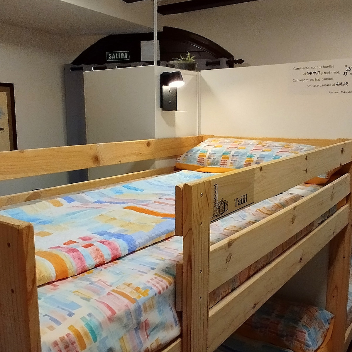 Cama alta en litera doble en habitación compartida de 8 camas. Somos en esencia un lugar de acogida de personas Peregrinas, pero recibimos también a todas las personas que valoran una ubicación más acogedora y menos masificada. Ofrecemos una alternativa de alojamiento en clara distinción con otros de más convencionales e impersonales: atención personalizada, en pequeños grupos, en contacto con la naturaleza, siendo consecuentes con los valores naturales, culturales, comunitarios y sociales.