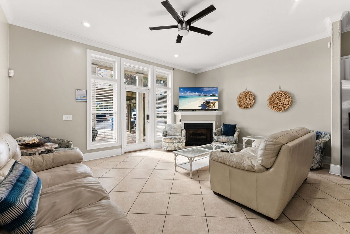 Rumah 3 bilik tidur, 5 bilik mandi yang menakjubkan dengan kolam renang persendirian! 50 ela dari pantai paling putih di Teluk Mexico. Tingkat 1 mempunyai ruang tamu yang luas, meja makan 8 tempat duduk & dapur lengkap. Tingkat 2 mempunyai ruang tamu lain, bar basah dengan sinki + 1/2 bilik mandi, katil dua tingkat terbina dalam & bilik tidur dengan katil king & bilik mandi penuh. Tingkat 3 mempunyai bilik tidur utama dengan katil king, bilik mandi utama persendirian & bilik tidur tetamu lain dengan dua katil queen. Tanya tentang menyewa kedua-dua rumah bandar untuk percutian keluarga besar.