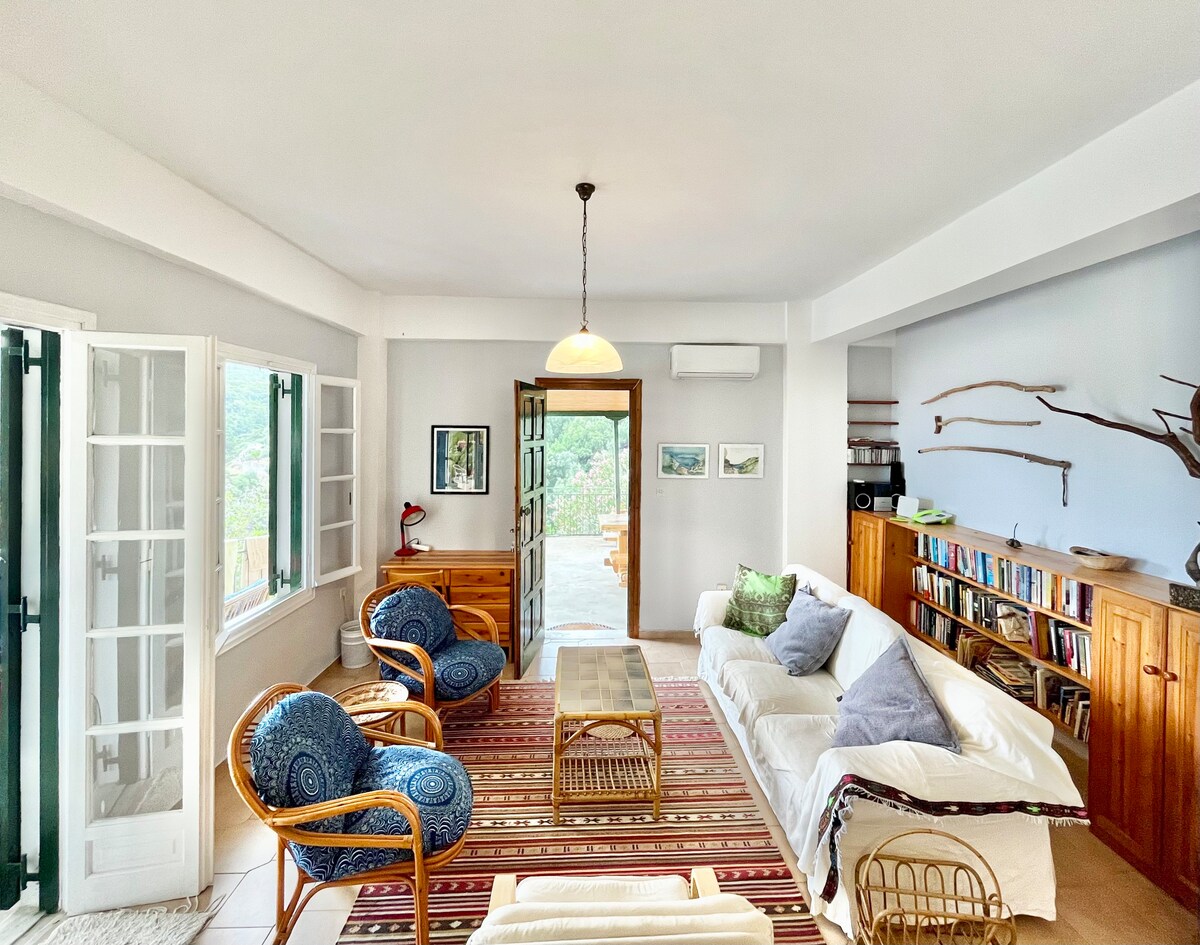 Studio kami yang indah di Ithaca berhampiran dengan pusat Kioni (3-4 minit berjalan kaki ke 'pelabuhannya yang indah), hanya beberapa langkah dari tepi teluk dan cerah dan luas dengan semua yang anda perlukan untuk percutian Ithacan anda. Studio anda berada dalam jarak berjalan kaki ke restoran, kafe, bar, pasar mini dll./ Dari teresnya anda boleh menikmati pemandangan laut Ionia yang menakjubkan, dengan laut dan pantainya yang indah. Teres ini DIKONGSI dengan studio di sebelah, tetapi setiap studio adalah bebas.