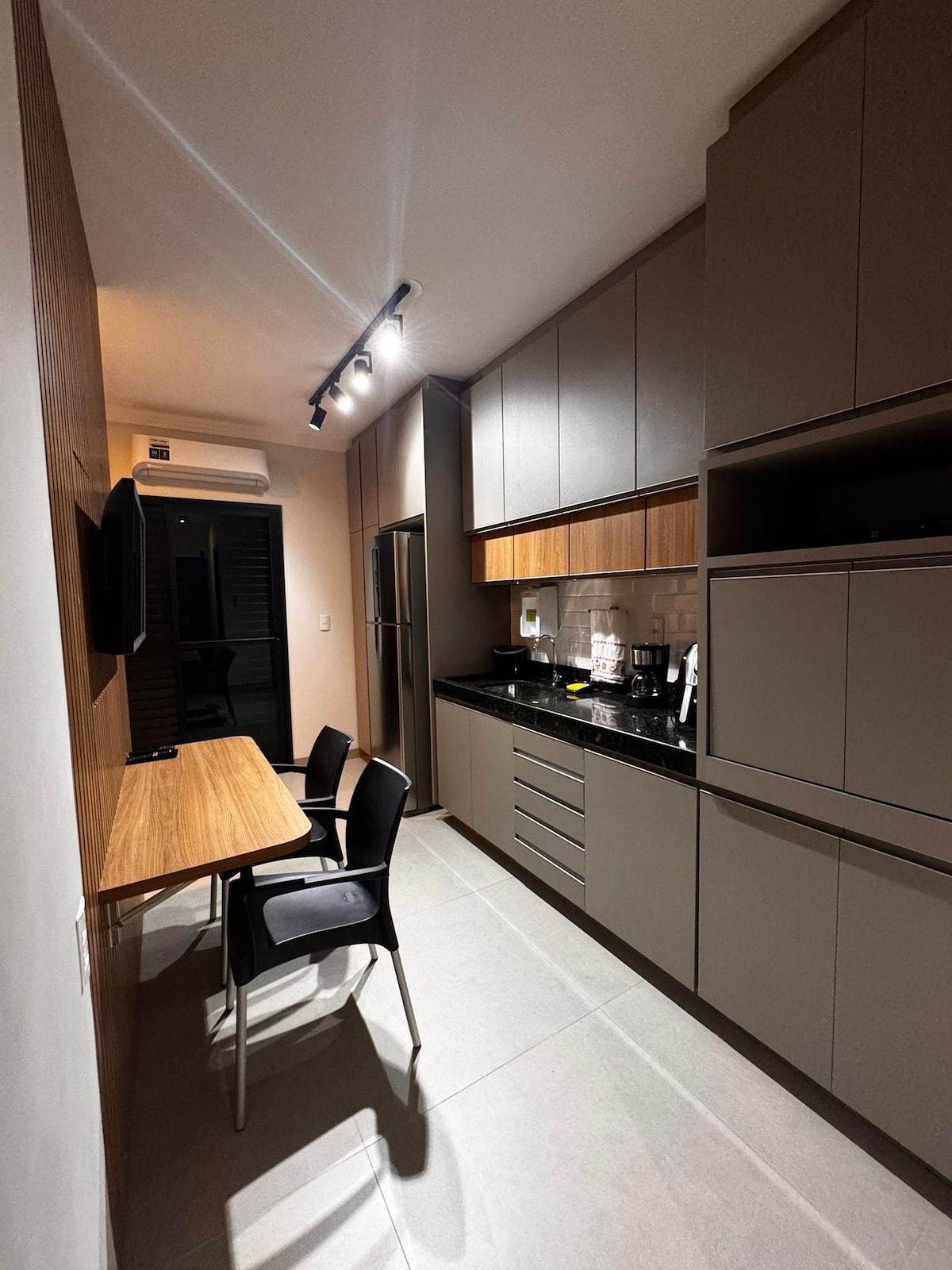 Cerque-se de estilo neste espaço excepcional. Selfcheckin dando acesso a um ambiente todo mobiliado com produtos de altíssima qualidade geladeira, fogão cooktop, maquina de lavar, microondas, utensílios domésticos para você se sentir na sua casa, iluminação aconchegante, ar condicionado na sala e quarto, ferro de passar roupas, secador, televisões smart e wifi de alta velocidade!Acompanha toalhas e roupas de cama sempre limpas
