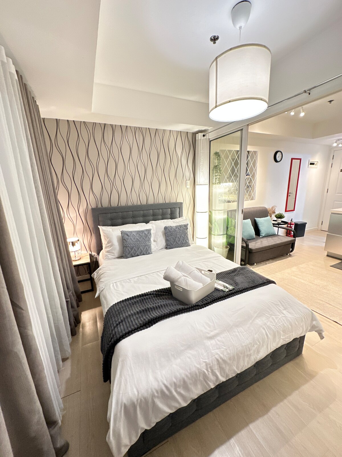 Alami keselesaan dan kemudahan di kondominium 1BR bergaya ini di Parañaque. Hanya beberapa minit dari Lapangan Terbang NAIA dan Mall of Asia, tempat kami sesuai untuk pengembara, percutian, atau perjalanan perniagaan. Unit ini menampilkan WiFi yang pantas, TV Pintar yang sedia untuk Netflix, dapur yang serba lengkap, dan bilik tidur yang selesa untuk malam yang tenang. Tetamu juga menikmati akses kepada kolam renang, gimnasium dan keselamatan 24/7. Dengan lokasi pusat dan suasana santai, ia merupakan pangkalan penginapan yang ideal untuk penginapan anda di Manila.