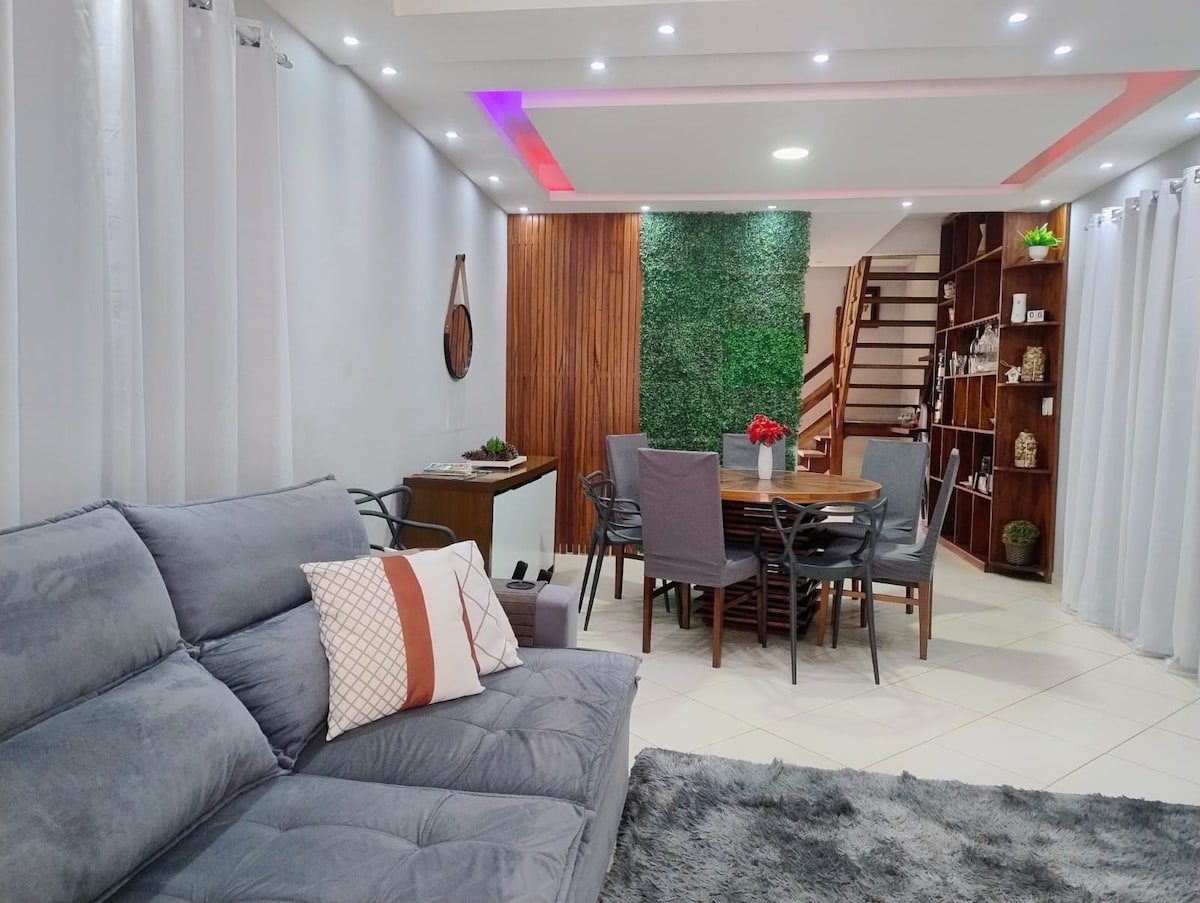Rumah yang lazat, luas, bersih, lapang dan dihiasi dengan banyak pesona! Penginapan dengan 1 suite dan 3 bilik tidur dengan katil double box dan sofa bed 2 tempat duduk. Aircond dan kipas di semua bilik. Terletak di kejiranan yang tenang, dengan akses mudah ke air terjun dan lebuh raya Rio Santos yang memberikan akses kepada pantai terbaik Paraty. Semua yang anda perlukan untuk menikmati masa yang menyeronokkan bersama keluarga anda di Paraty.