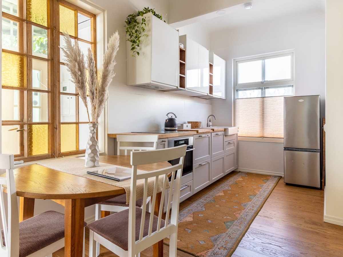 This cosy and stylish one bedroom apartment with separate kitchen and dining area is perfect for couples, the atmosphere is romantic and relaxed. You can use free parking place inside the private yard of the house. The location is just perfect, everything is close. You can walk to the city centre in 5 minutes, white sanded beach is about 10 minutes of walk. Come and enjoy Pärnu - the summer capital of Estonia!