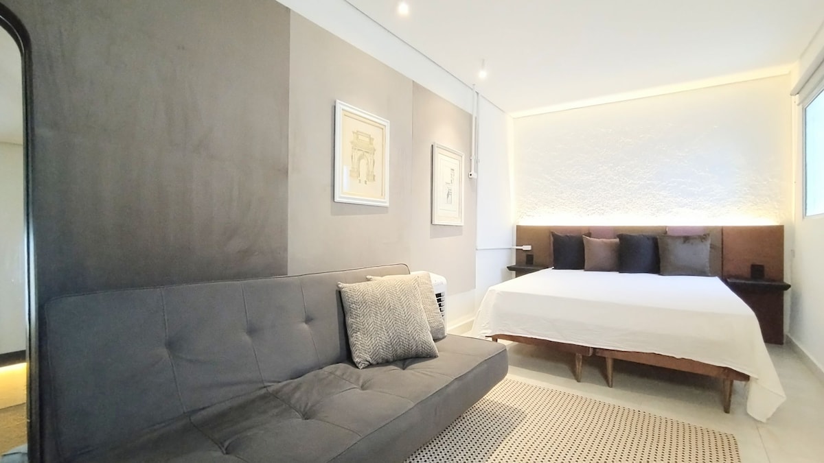 Alami One Eleven di Vila Olimpia. Apartmen moden ini mempunyai tingkap besar dengan pemandangan bandar yang menakjubkan dan cahaya semula jadi. Unit ini mempunyai internet 600 Mbps dan TV HD 4K. Untuk keselesaan sepenuhnya, ia mempunyai sistem pendingin hawa Panas/Sejuk: unit 27,000 BTU/j di ruang tamu dan 10,000 BTU/j di bilik tidur. Bilik tidur tenang dan gelap untuk tidur yang nyenyak. Dijelaskan dengan sempurna, anda akan berada dalam jarak berjalan kaki ke restoran dan pusat perniagaan terbaik—tempat percutian mewah yang selamat dengan latar bandar yang menakjubkan.