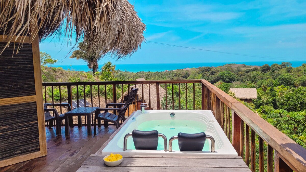Kabin Guacamaya dengan jakuzi dan pemandangan laut.