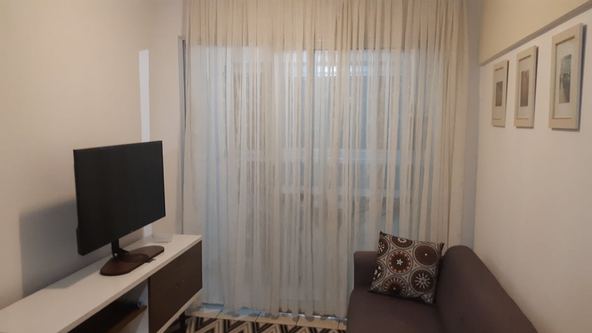 Ruang seluas 13,19 m² dengan segala yang diperlukan untuk penginapan kerja atau percutian. Di dalam bilik tidur terdapat ketuhar gelombang mikro dan bar mini untuk kemudahan anda. Dua blok dari Segitiga Bermuda - kompleks bar terbaik di Vitória, apartmen ini mempunyai lokasi Praia do Canto yang paling istimewa. Kejiranan ini menawarkan bar, kedai roti, pasar raya, farmasi dan restoran. Akses mudah ke Shopping Vitória (5 minit dari kereta), jambatan ke-3 - yang menghubungkan Vitória ke Vila Velha - dan Pantai Camburi.