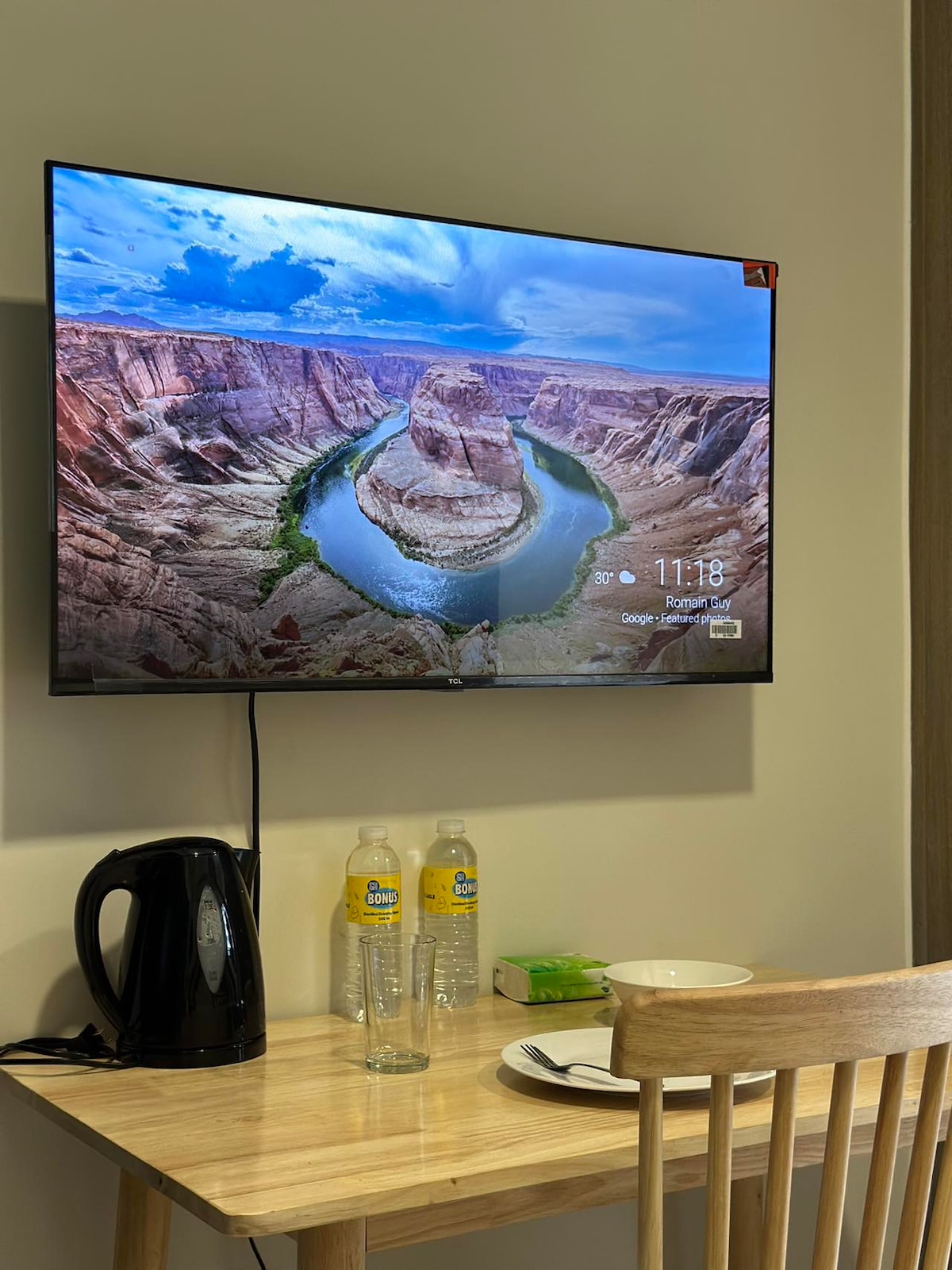 Bercuti ke suite tingkat tinggi dengan pemandangan latar langit BGC yang menakjubkan, bunyi keliling JBL sinematik, dan TV Pintar 4K Penuh 55 inci dengan pencahayaan mood LED. Syurga malam filem terbaik anda. Nikmati pemandangan dengan teropong gred tinggi, kemudian tenggelam ke dalam Katil Awan Emma® yang sangat selesa untuk tidur malam yang sempurna. Jauh daripada bunyi bising bandar namun dekat dengan segala-galanya, nikmati WiFi pantas, Netflix, Disney+ dan banyak lagi! Benar-benar ruang yang serba lengkap untuk pengalaman staycation yang lancar dan tidak dapat dilupakan dengan Cinema 27!