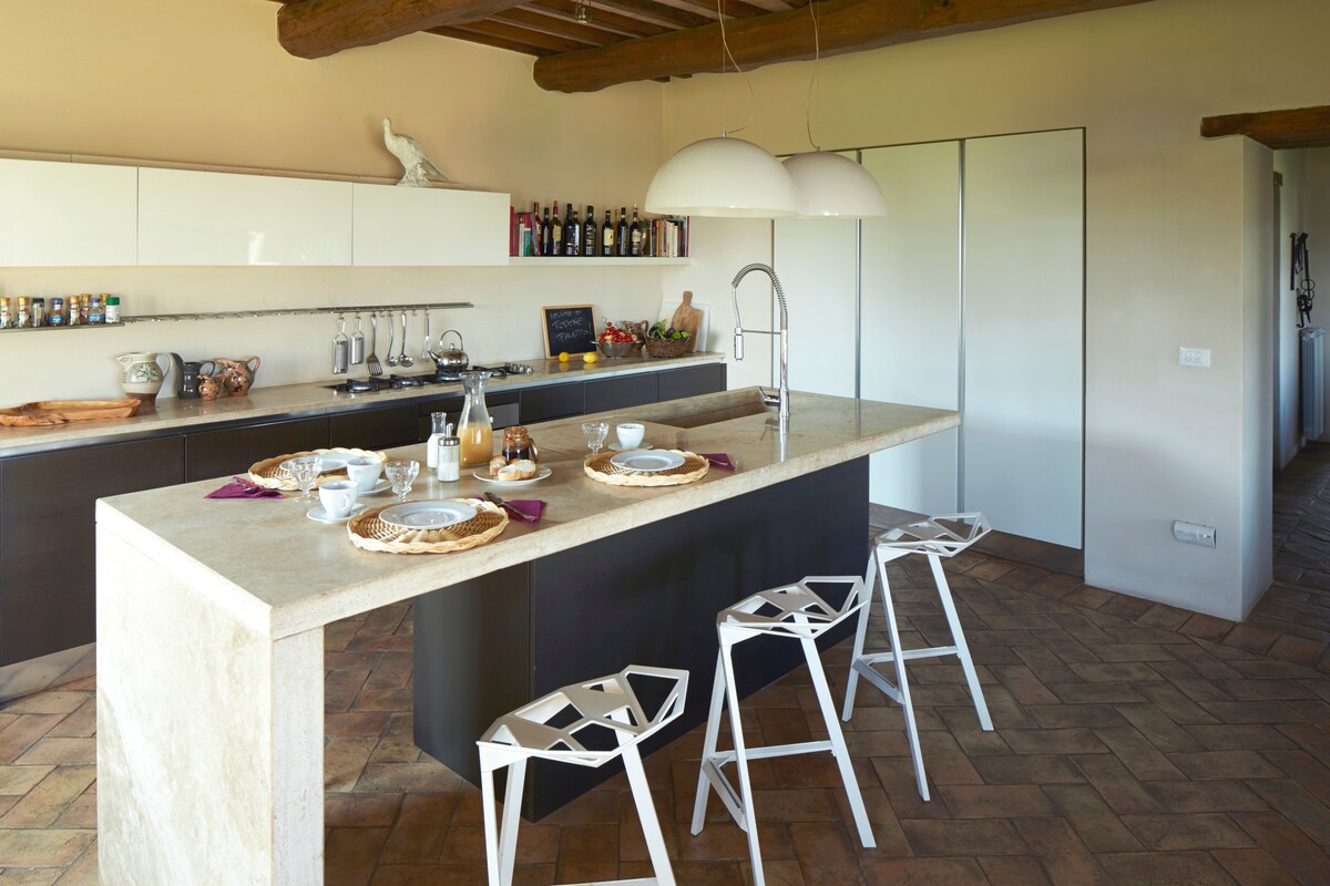 Rasa dekat dengan tanah di bangunan desa di ladang Tuscan. Dinding batu lama, siling dengan rasuk terdedah dan lantai terracotta adalah latar belakang kepada apartmen ciri dengan pendiangan. Terjun ke dalam kolam infiniti untuk pemandangan unik landskap di sekitarnya. Makan di luar, dengan udara segar membelai anda, duduk dan berehat sambil mengagumi matahari terbenam di bawah sipres purba.