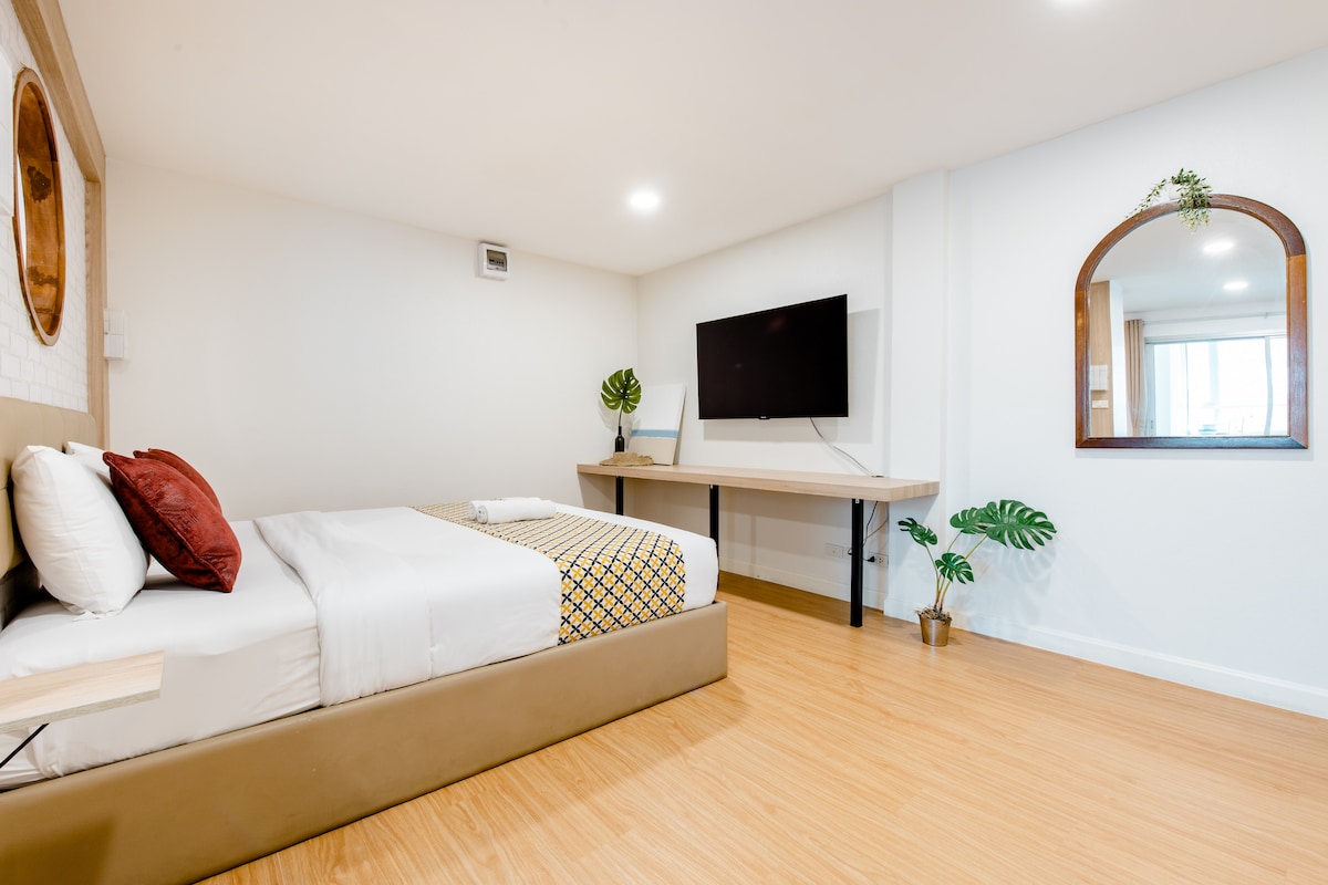 Alami keselesaan moden di bilik kami yang baru diubahsuai, hanya selangkah dari BTS Ari. Nikmati pemandangan bandar dan matahari terbenam yang menakjubkan dari tingkap besar, sesuai untuk berehat selepas seharian meneroka Bangkok. Ruang kami menampilkan hiasan berinspirasikan pertengahan abad, katil bersaiz king yang selesa dan suasana yang damai. Terletak berhampiran kafe bergaya, pasar tempatan, dan pengangkutan awam, ia sesuai untuk peneroka bandar yang mencari tempat percutian yang bergaya di pusat bandar.