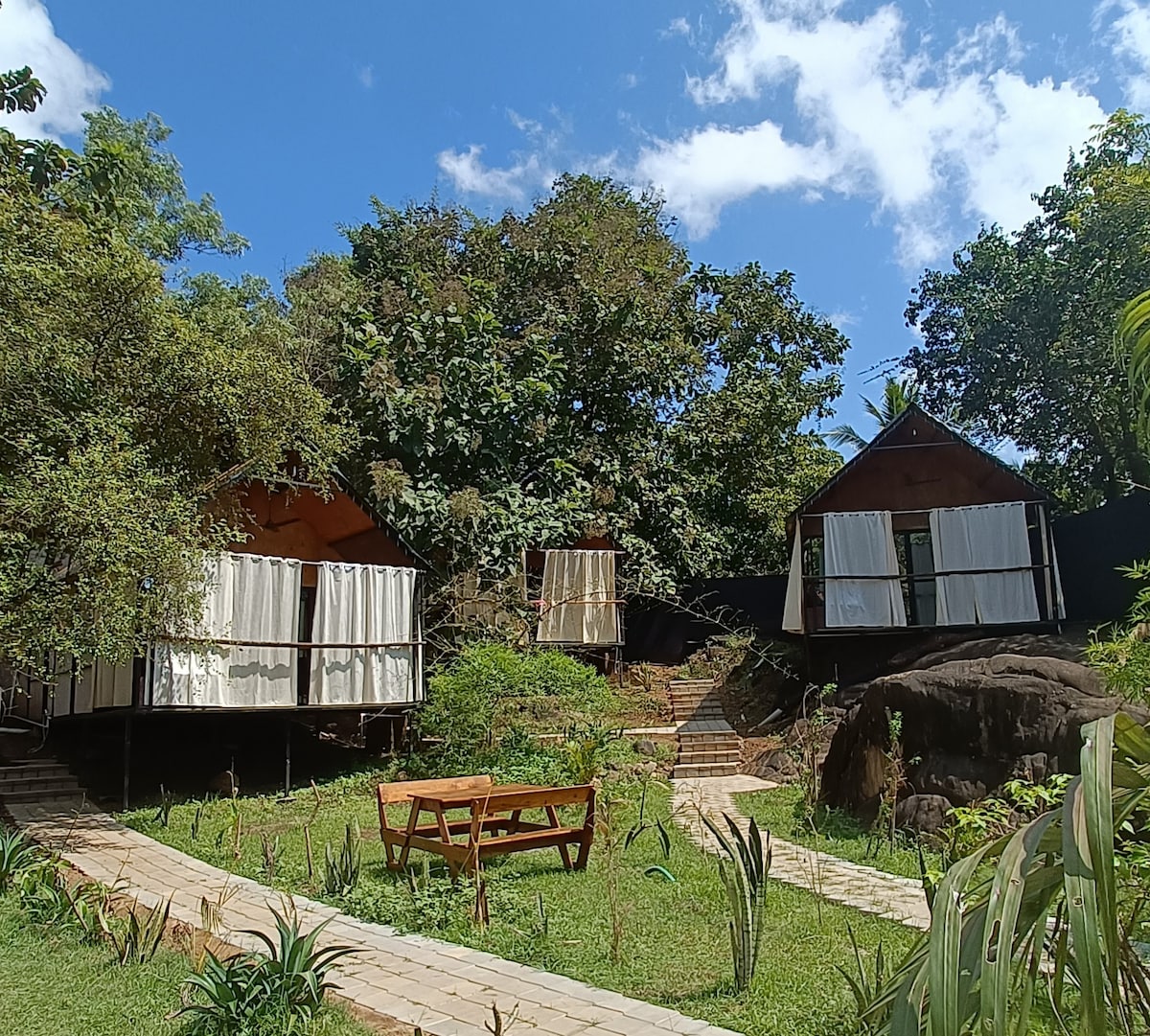Tempat tinggal yang perlahan, kami adalah homestay yang damai & menarik di atas bukit kecil yang menghadap sungai Talpona di Canacona, Goa Selatan. Homestay persembunyian yang dibina dengan kaedah bangunan tradisional menggunakan lumpur, limau dan kayu, ia lahir daripada minat kami terhadap bangunan semula jadi dan kehidupan yang mampan. Segala-galanya dibuat oleh kami dengan kasih sayang dan penjagaan, rumah ini penuh dengan inspirasi dan kreativiti, kami sangat bangga dengannya dan ingin berkongsi rumah kami dengan orang dari seluruh dunia.